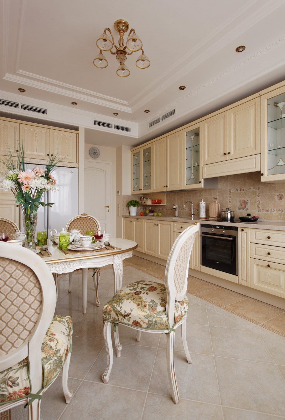 Дизайн кухни неоклассика в светлых тонах (42 фото)