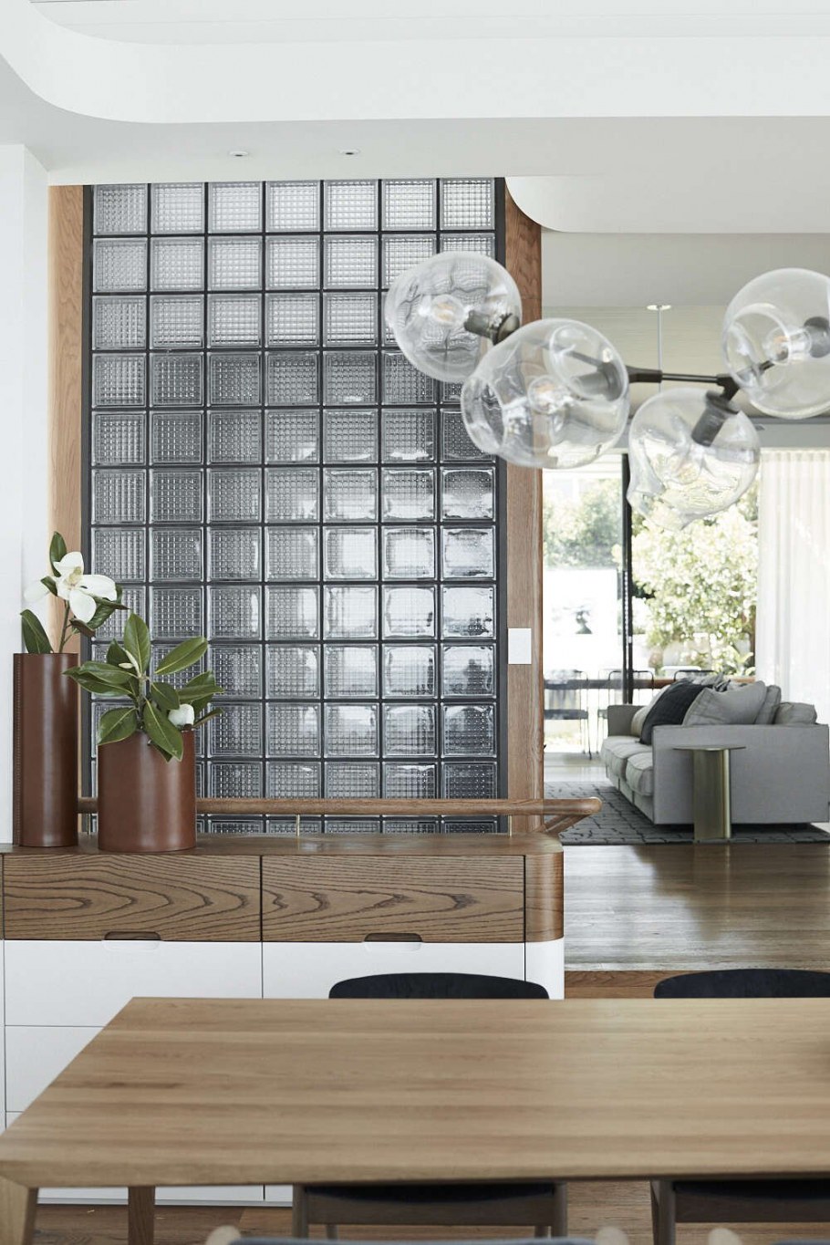 Перегородка из стеклянных блоков в гостиной