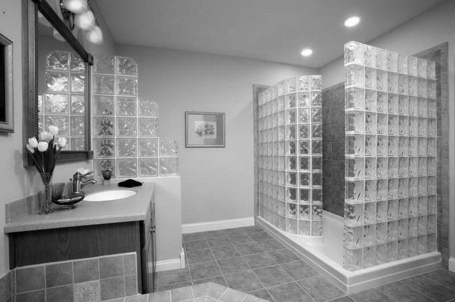 Интерьер ванных комнат стеклоблоки