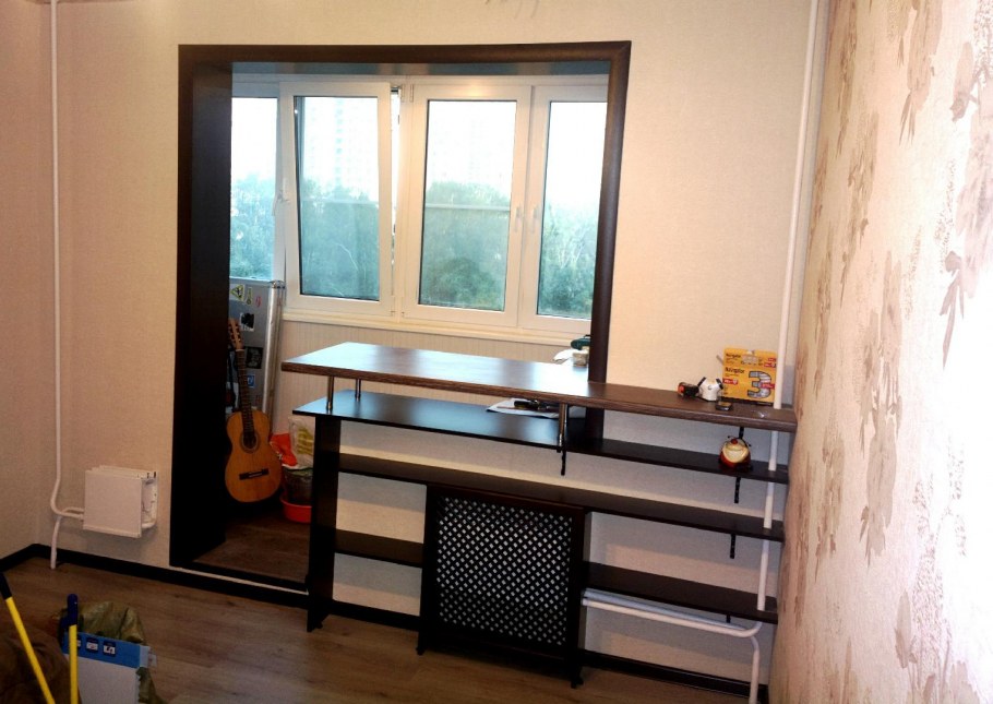 Барная стойка вместо балконного блока в интерьере (36 фото)