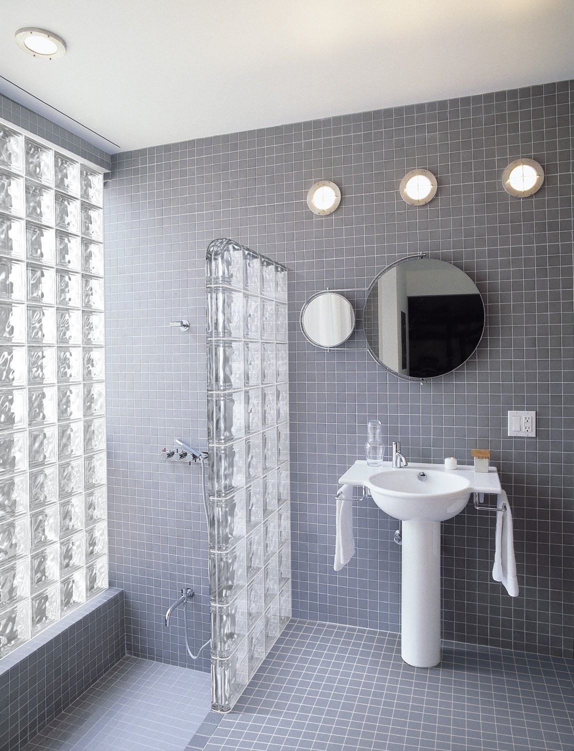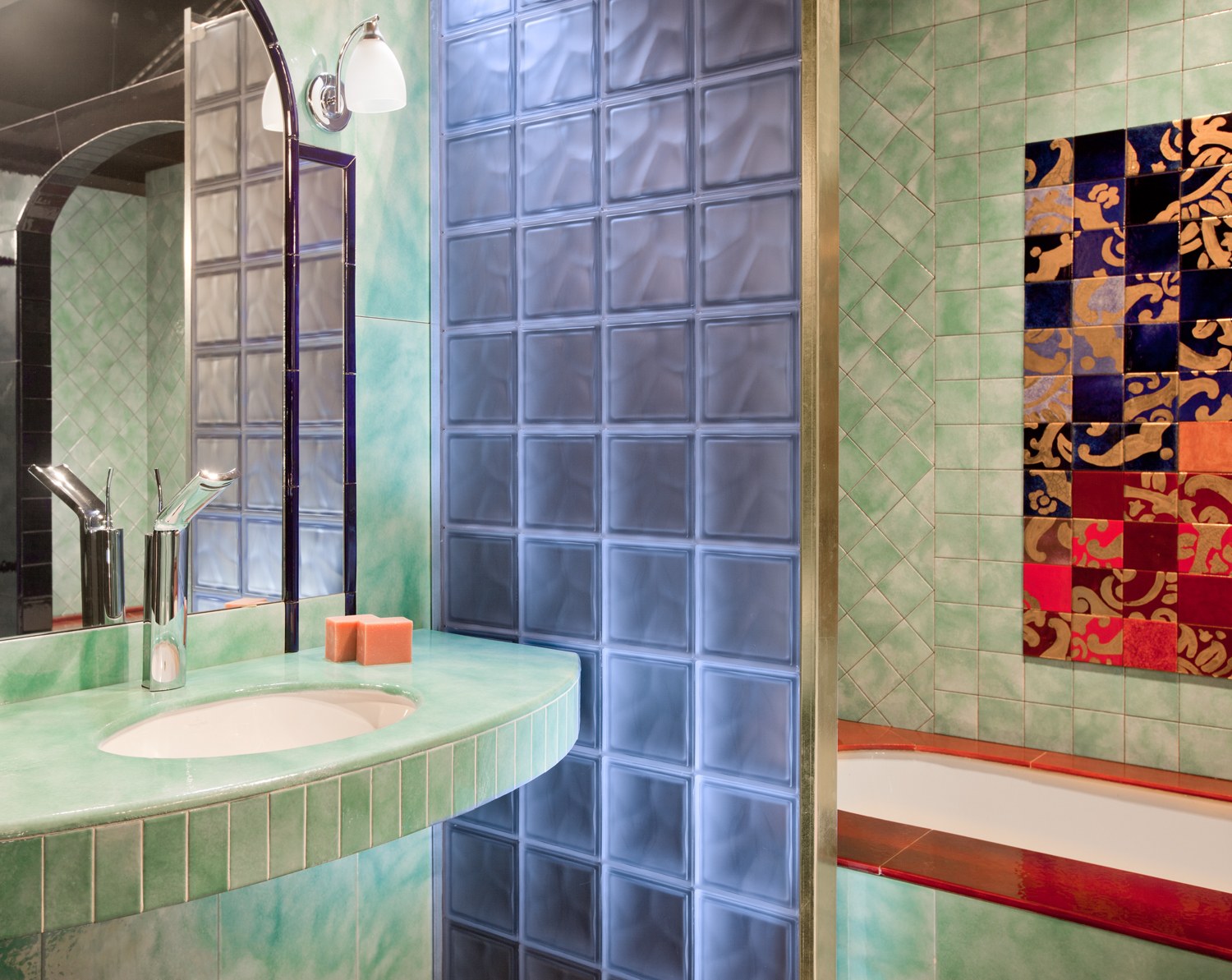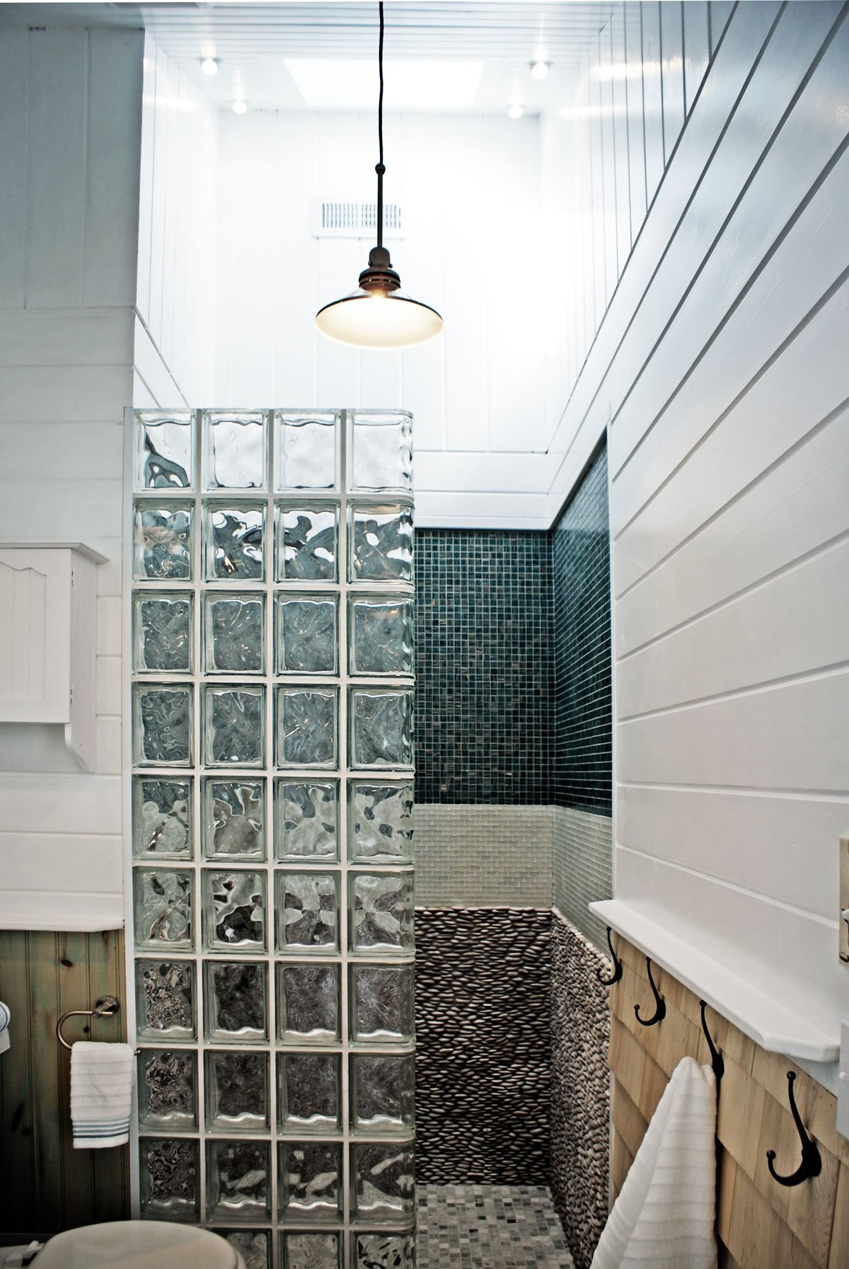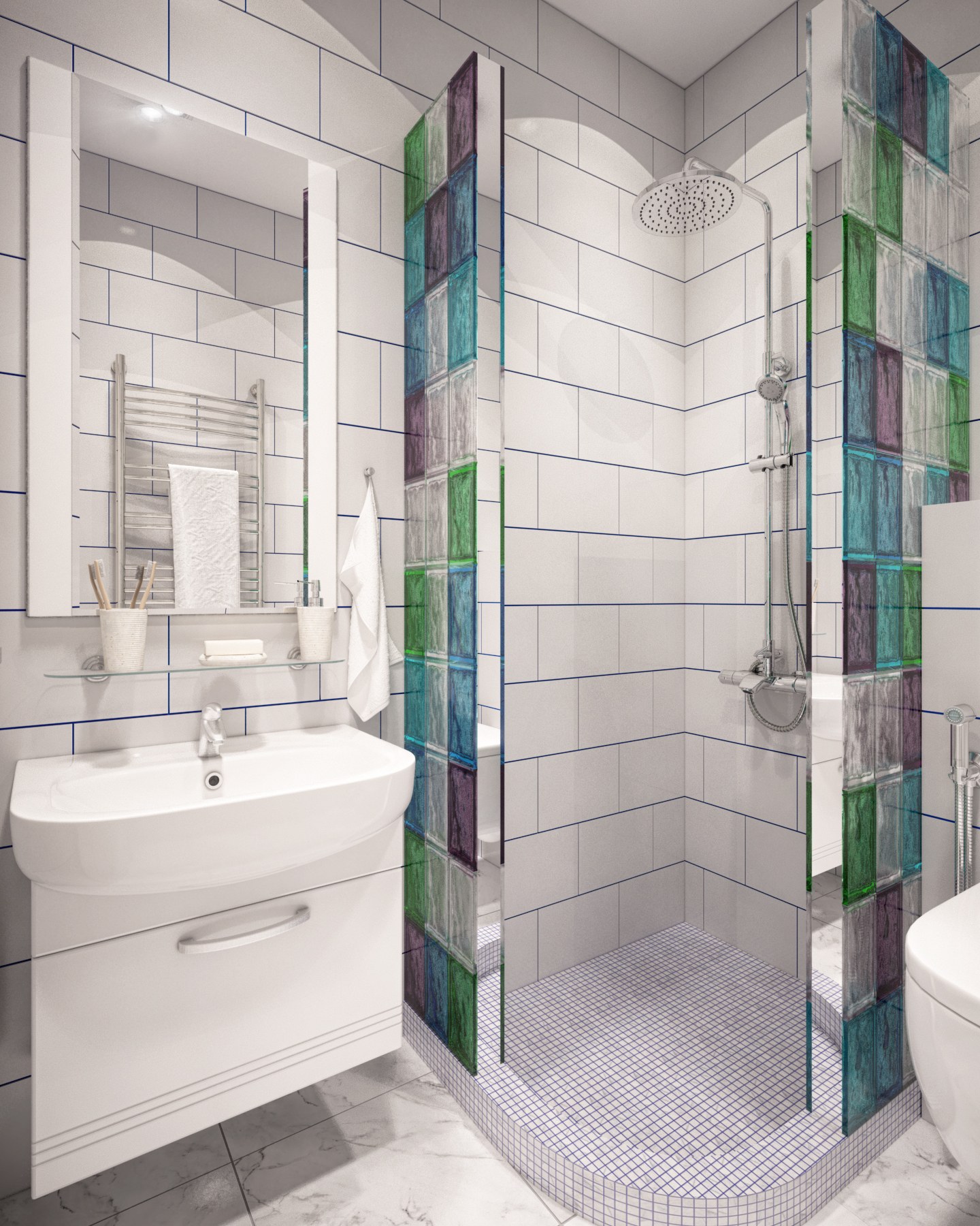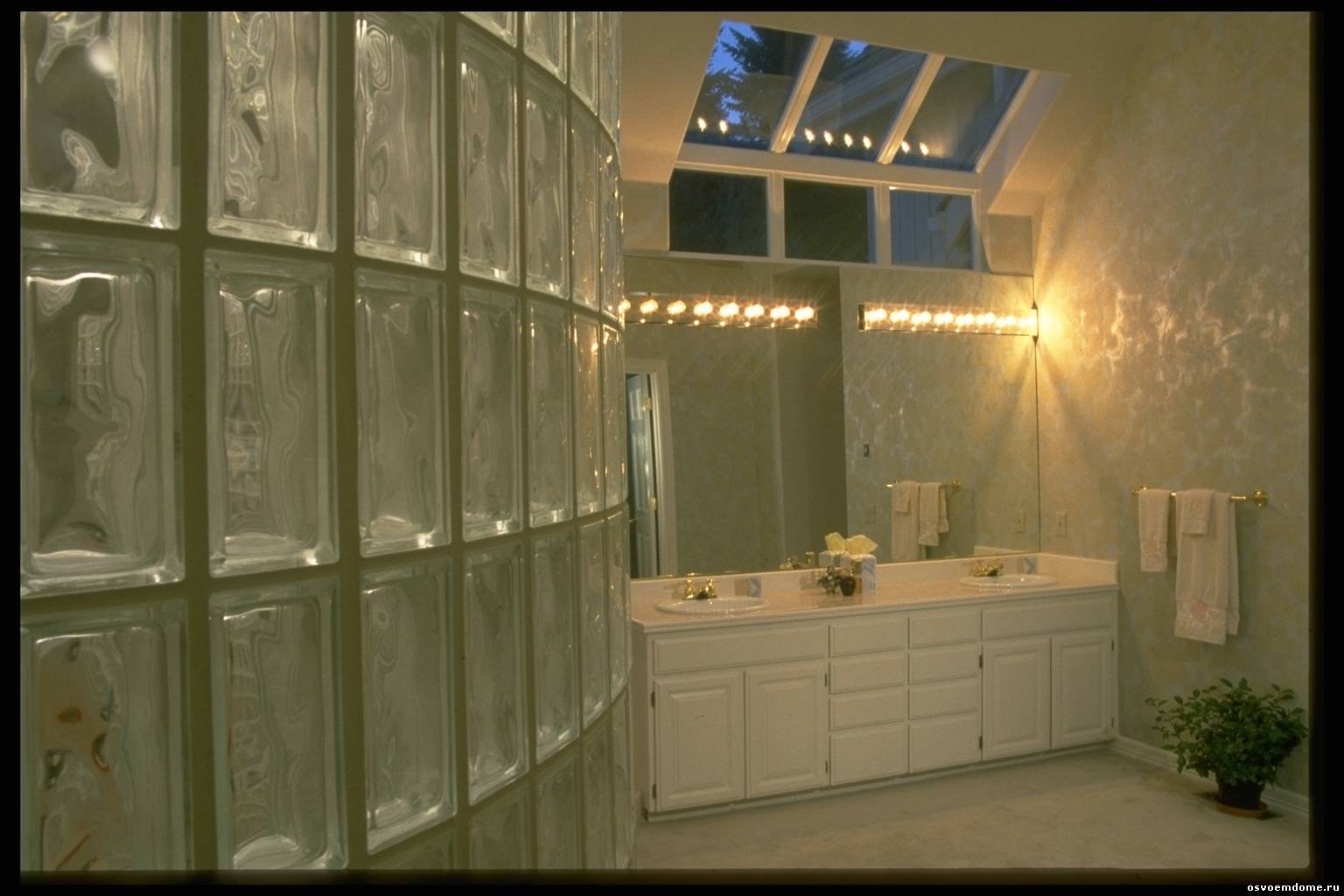 Ванная комната дизайн санузел совмещенный стеклоблоков (53 фото)