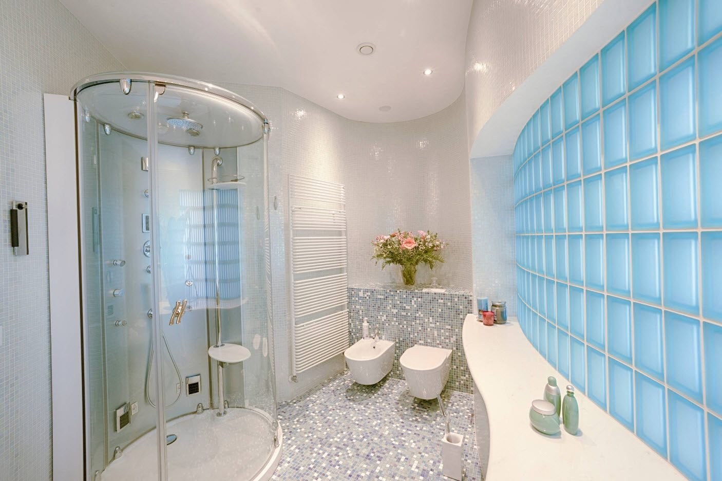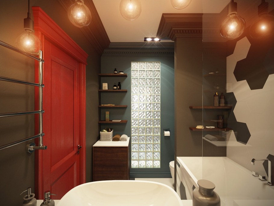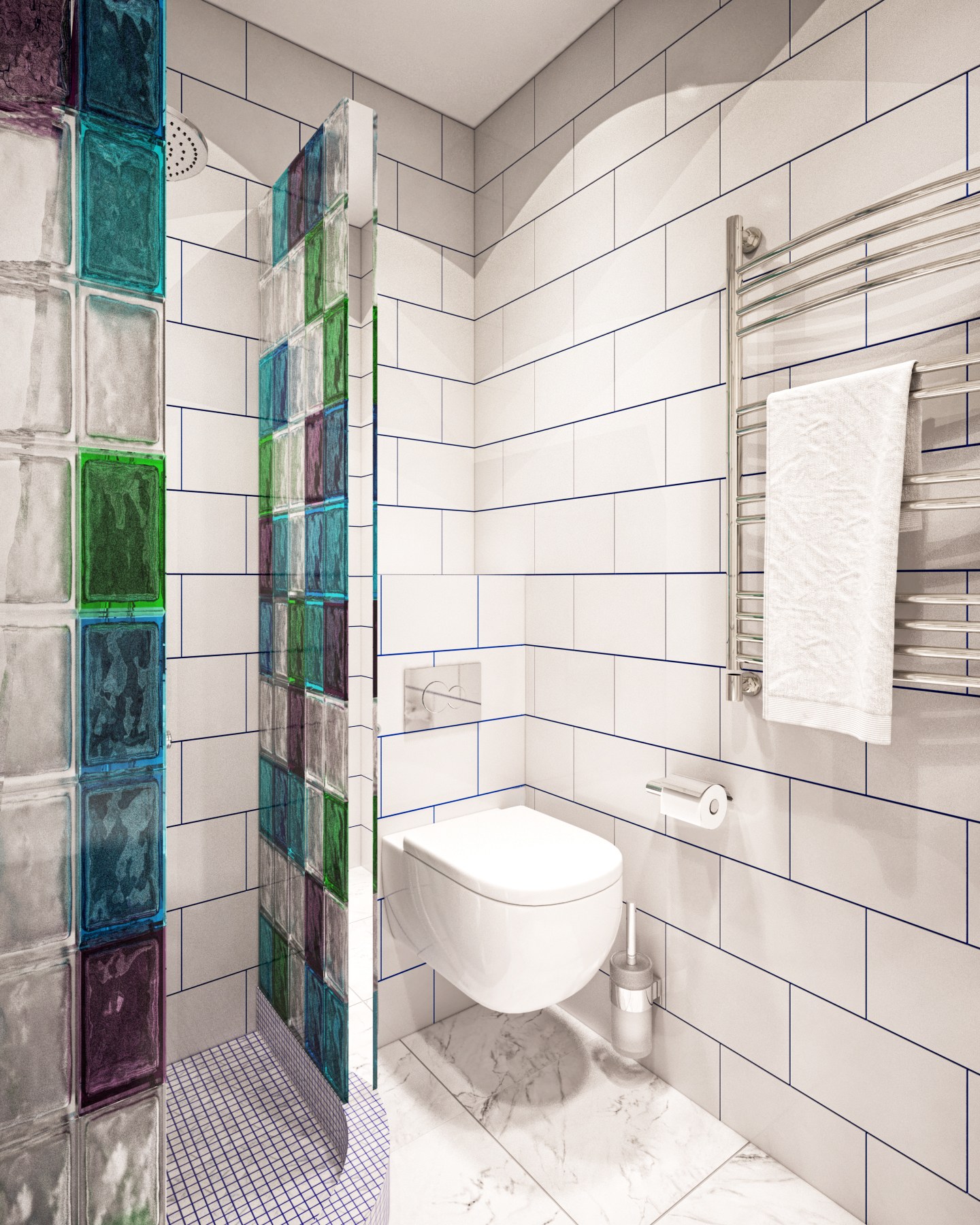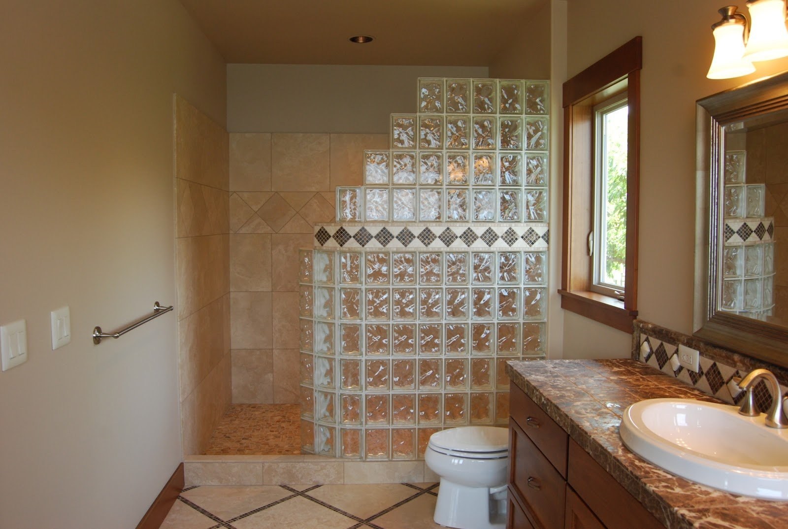 Ванная комната дизайн санузел совмещенный стеклоблоков (53 фото)