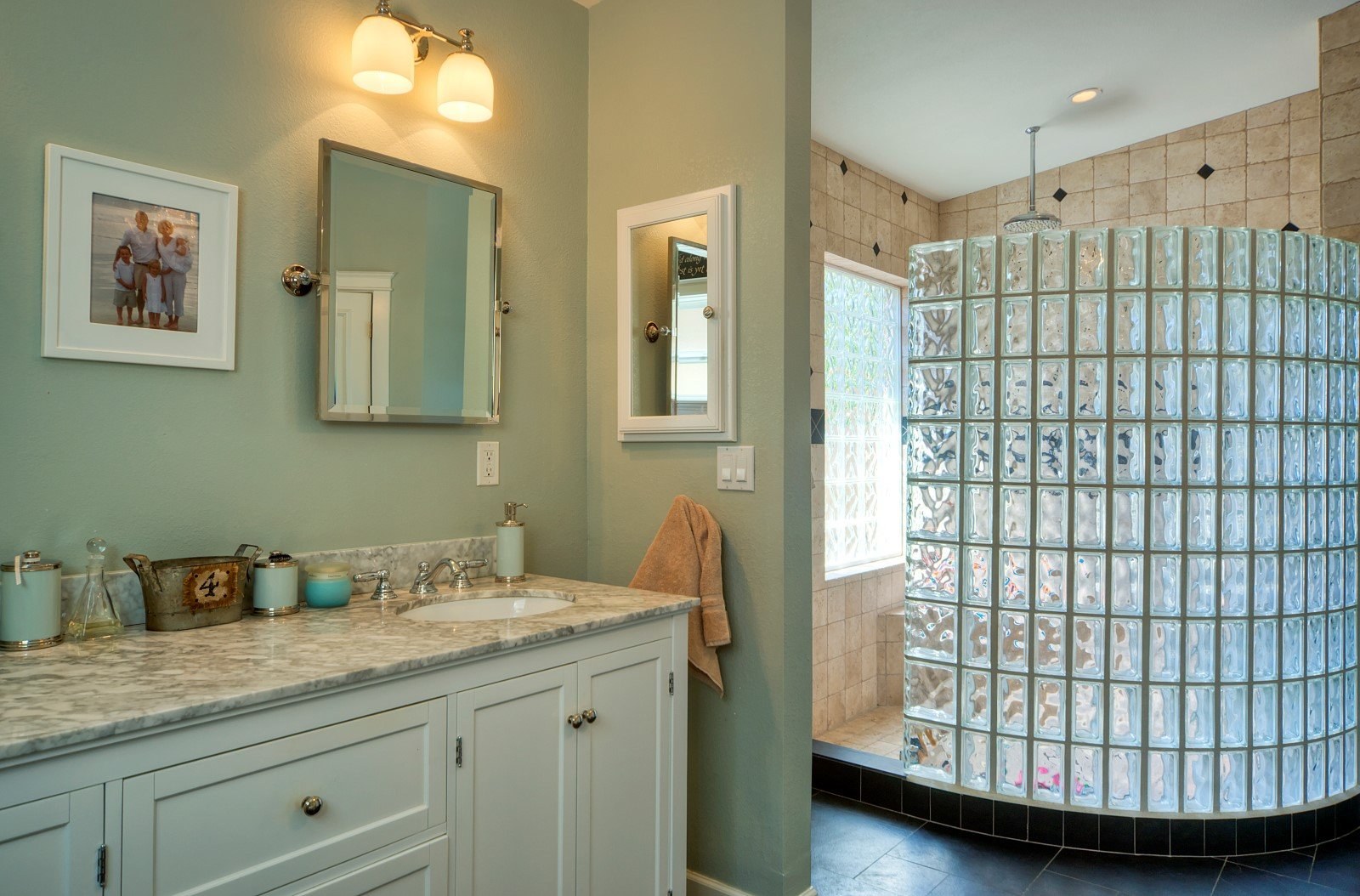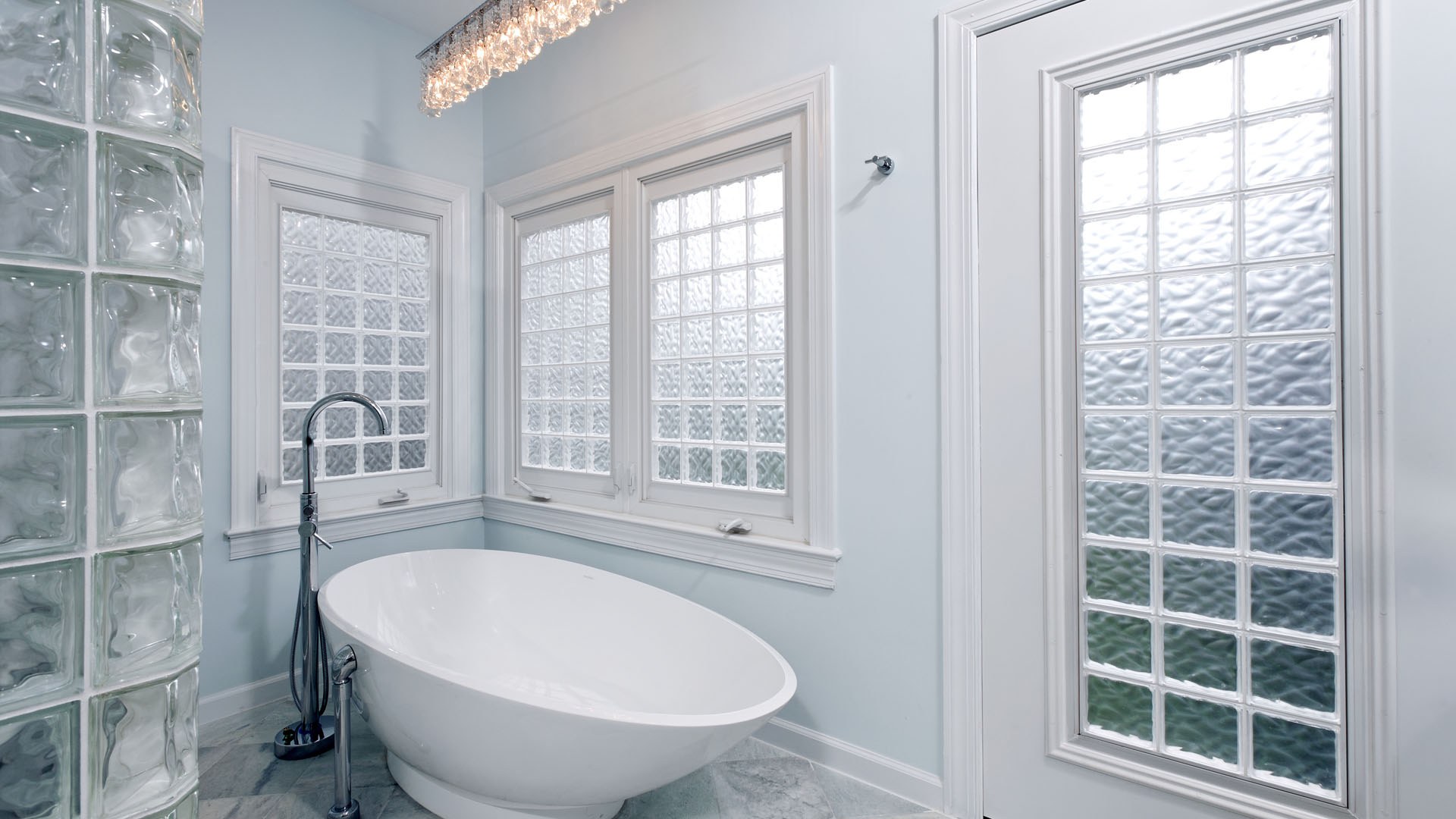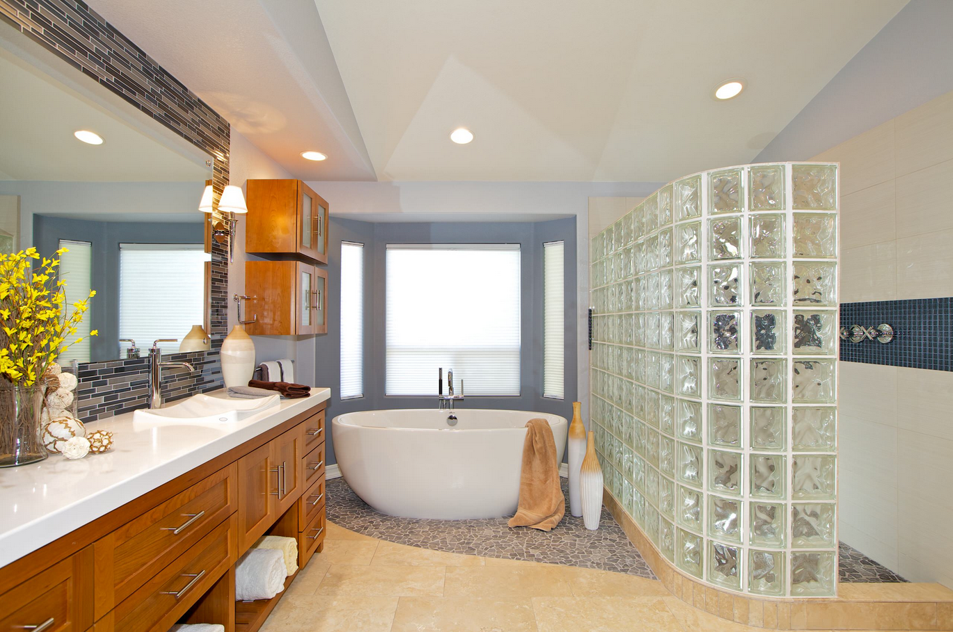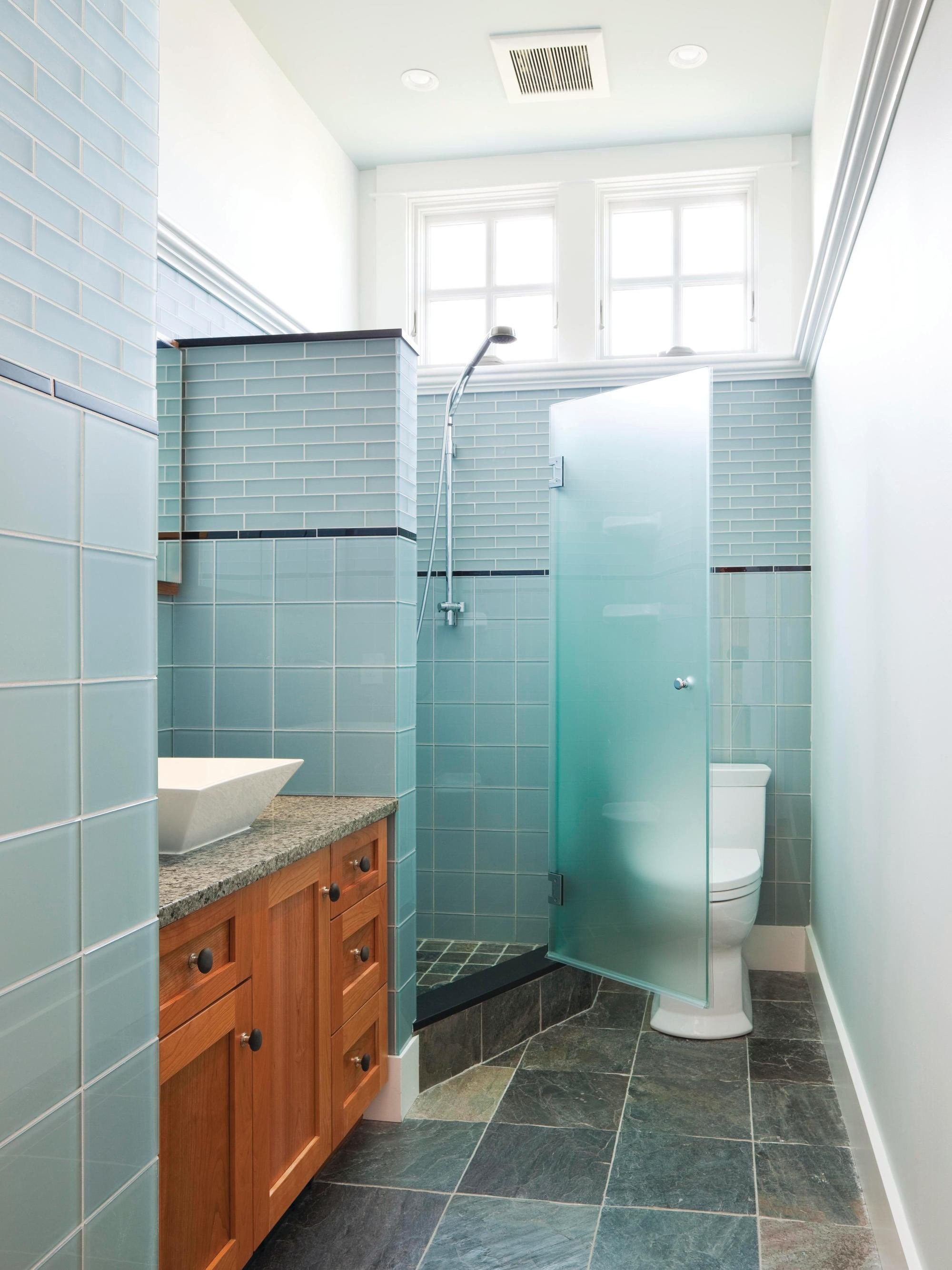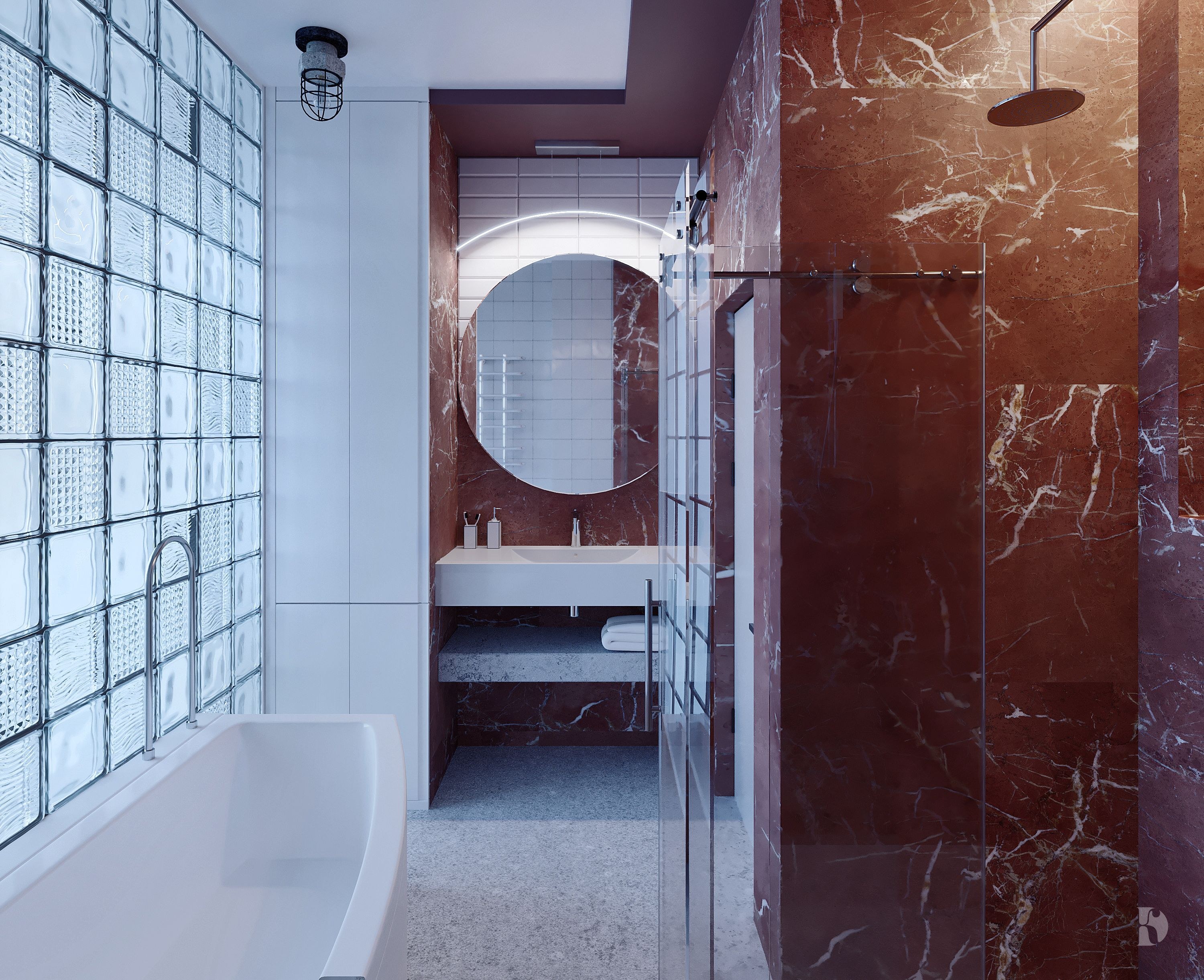 Ванная комната дизайн санузел совмещенный стеклоблоков (53 фото)