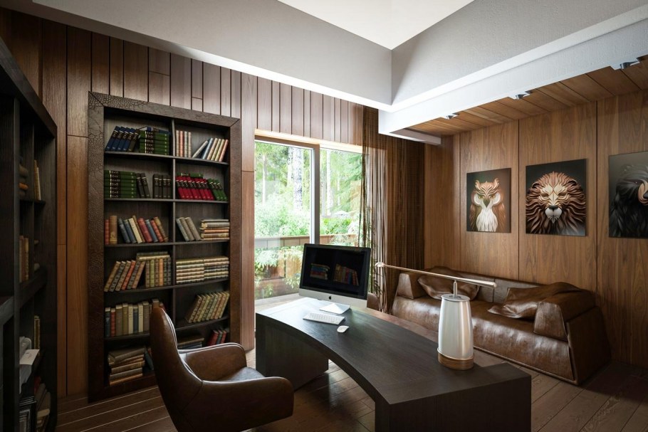 Дизайнерские стеллажи для книг в мужском интерьере 2021 год