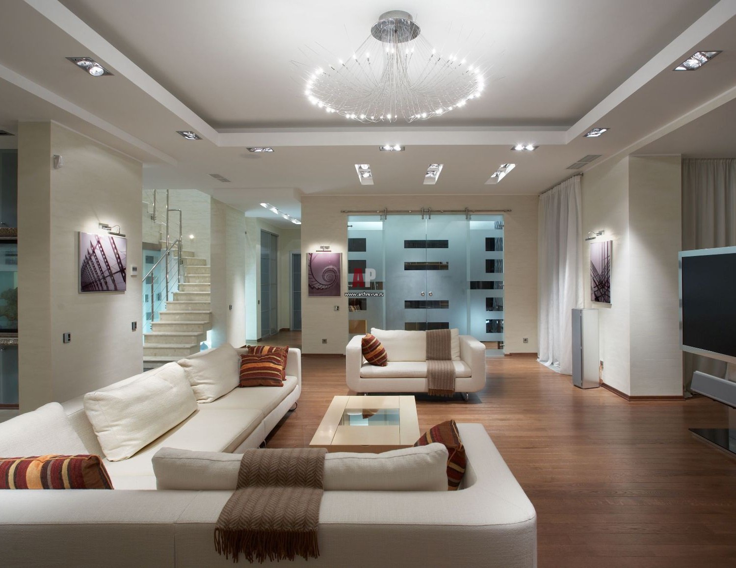 Потолки в стиле хайтек для гостиной