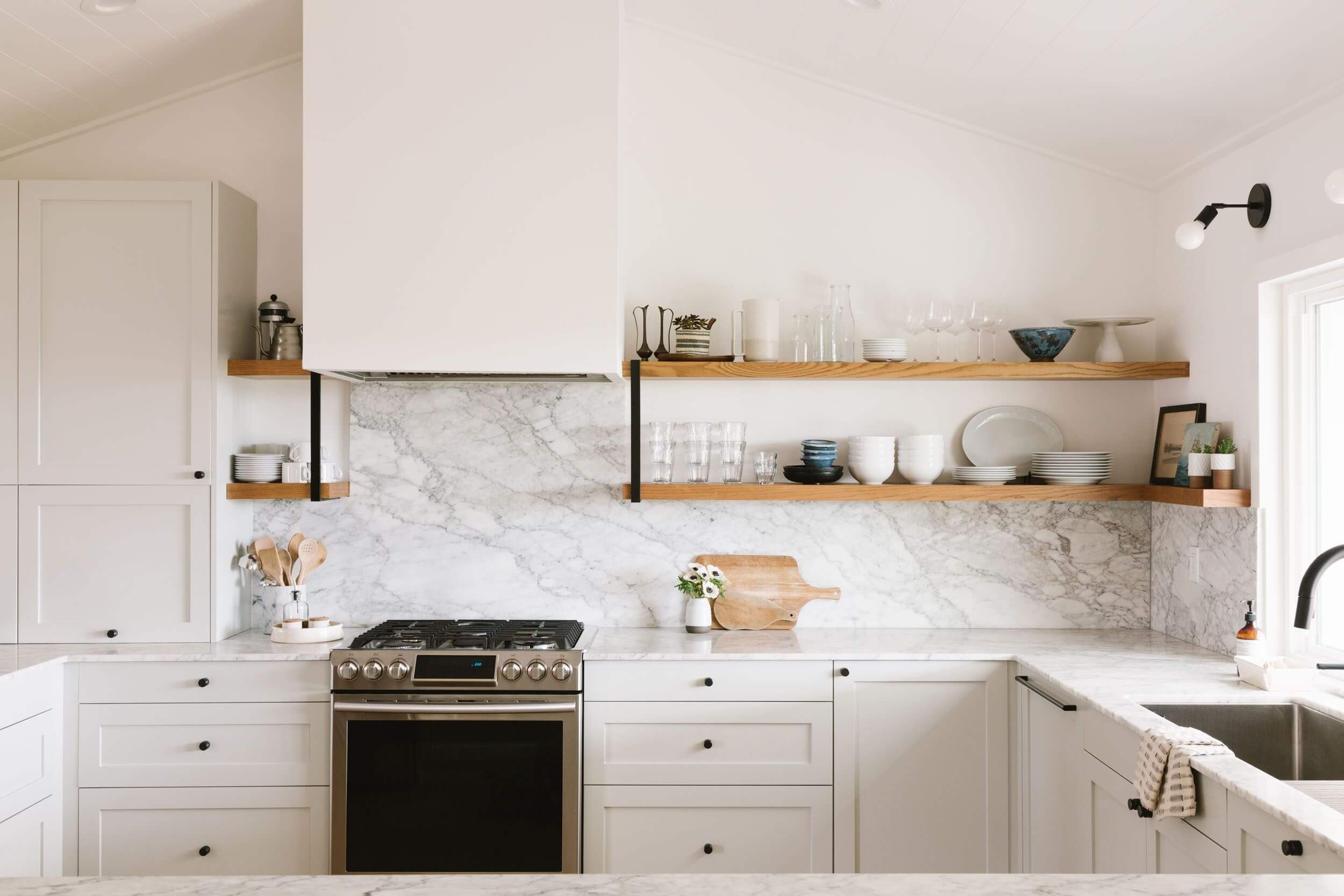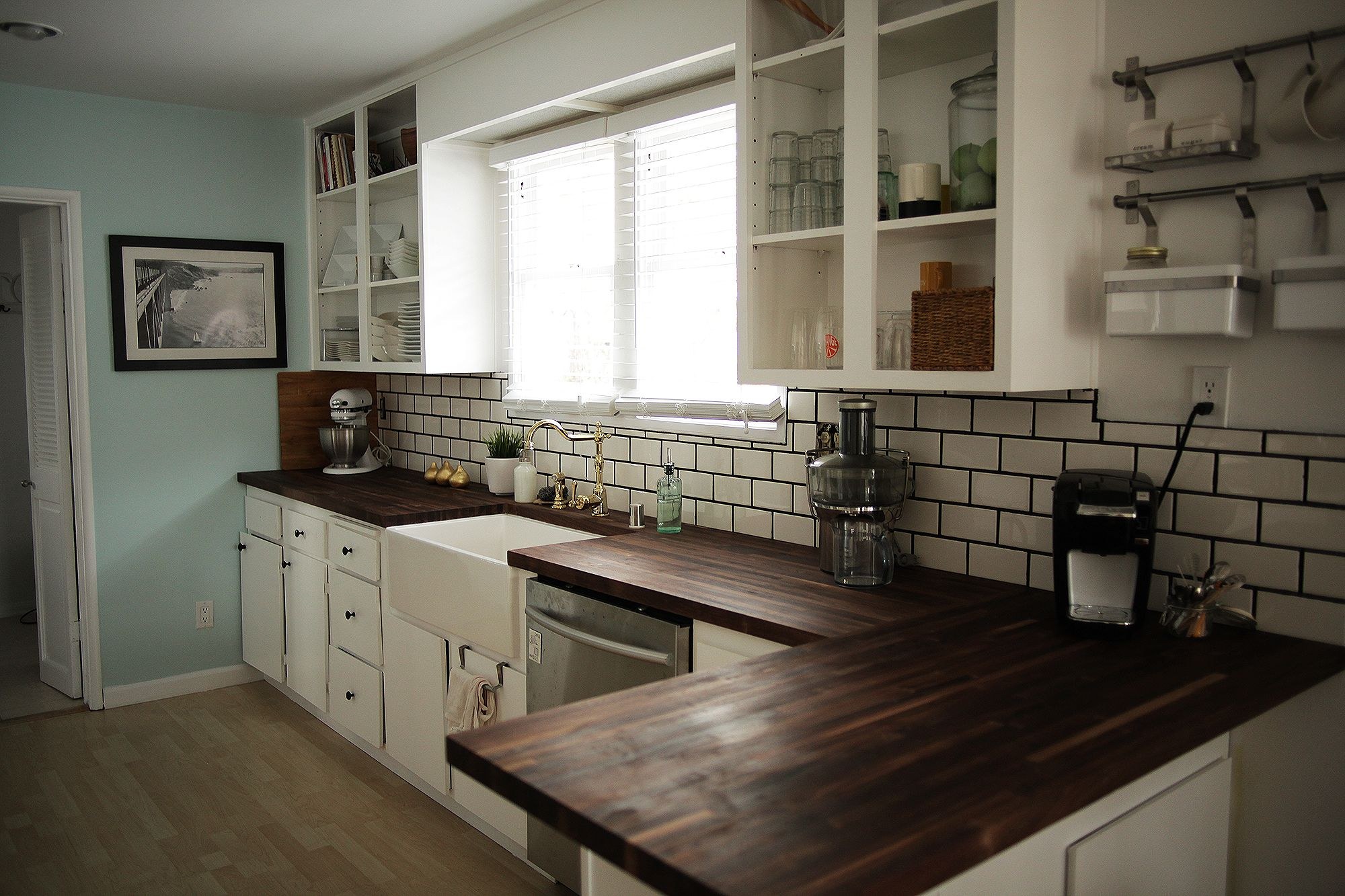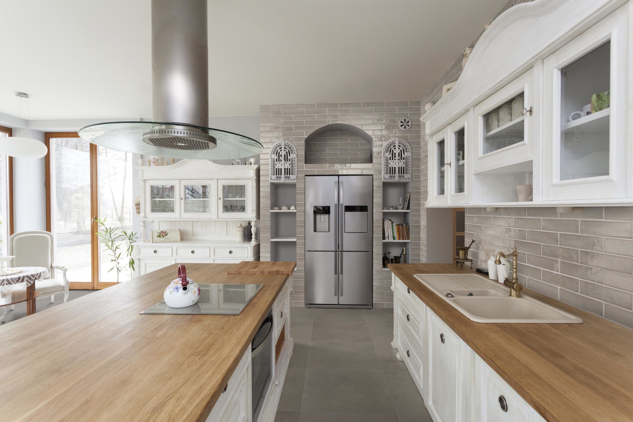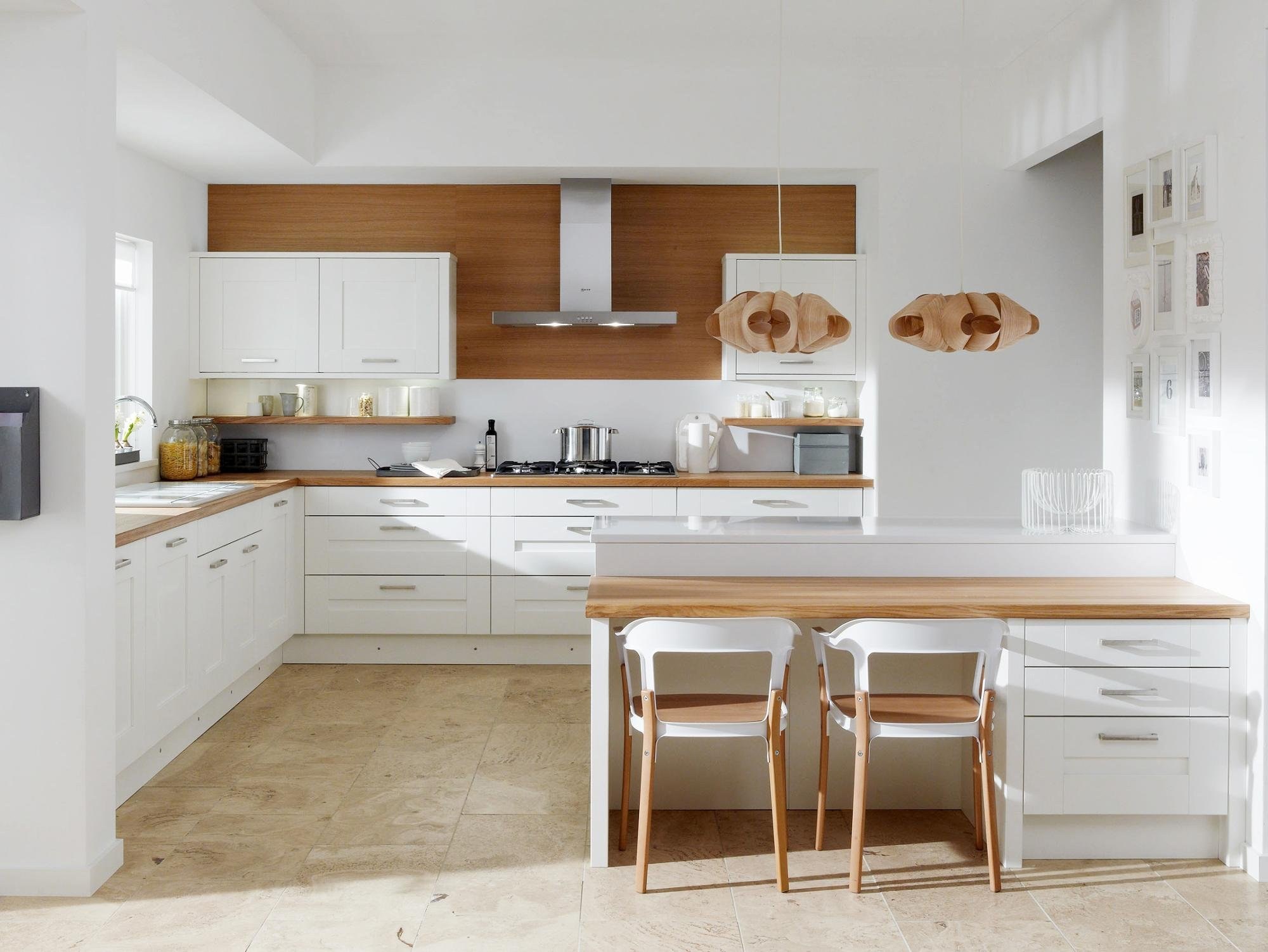 Столешница винтажное дерево в интерьере белой кухни (48 фото)