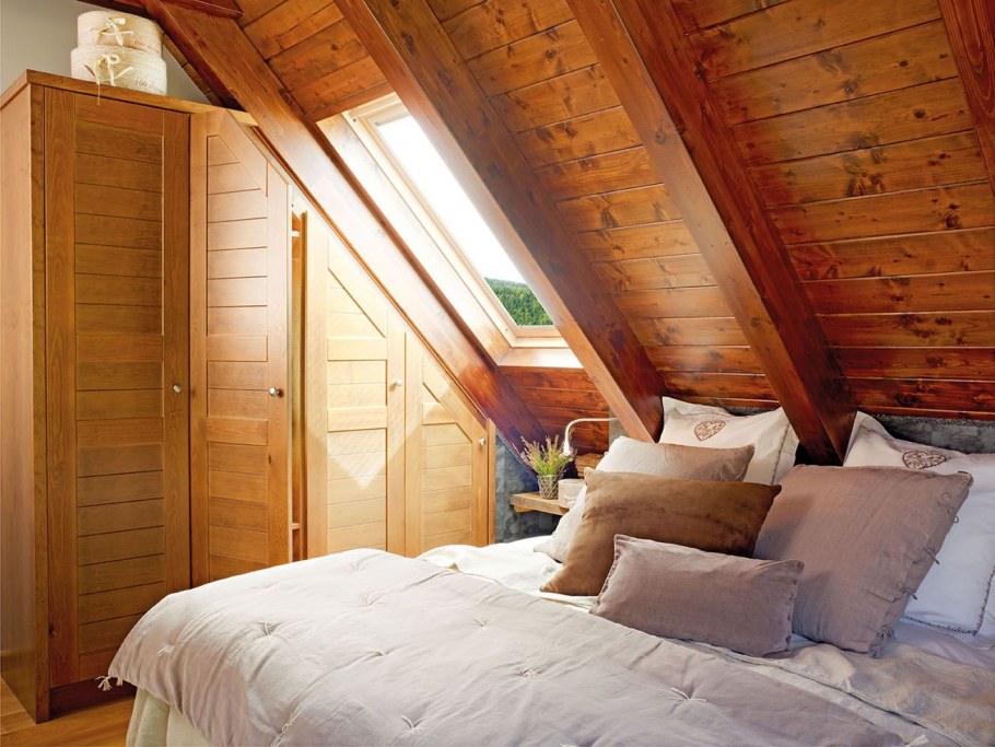 Дизайн комнаты в деревянном доме с косым потолком (48 фото)