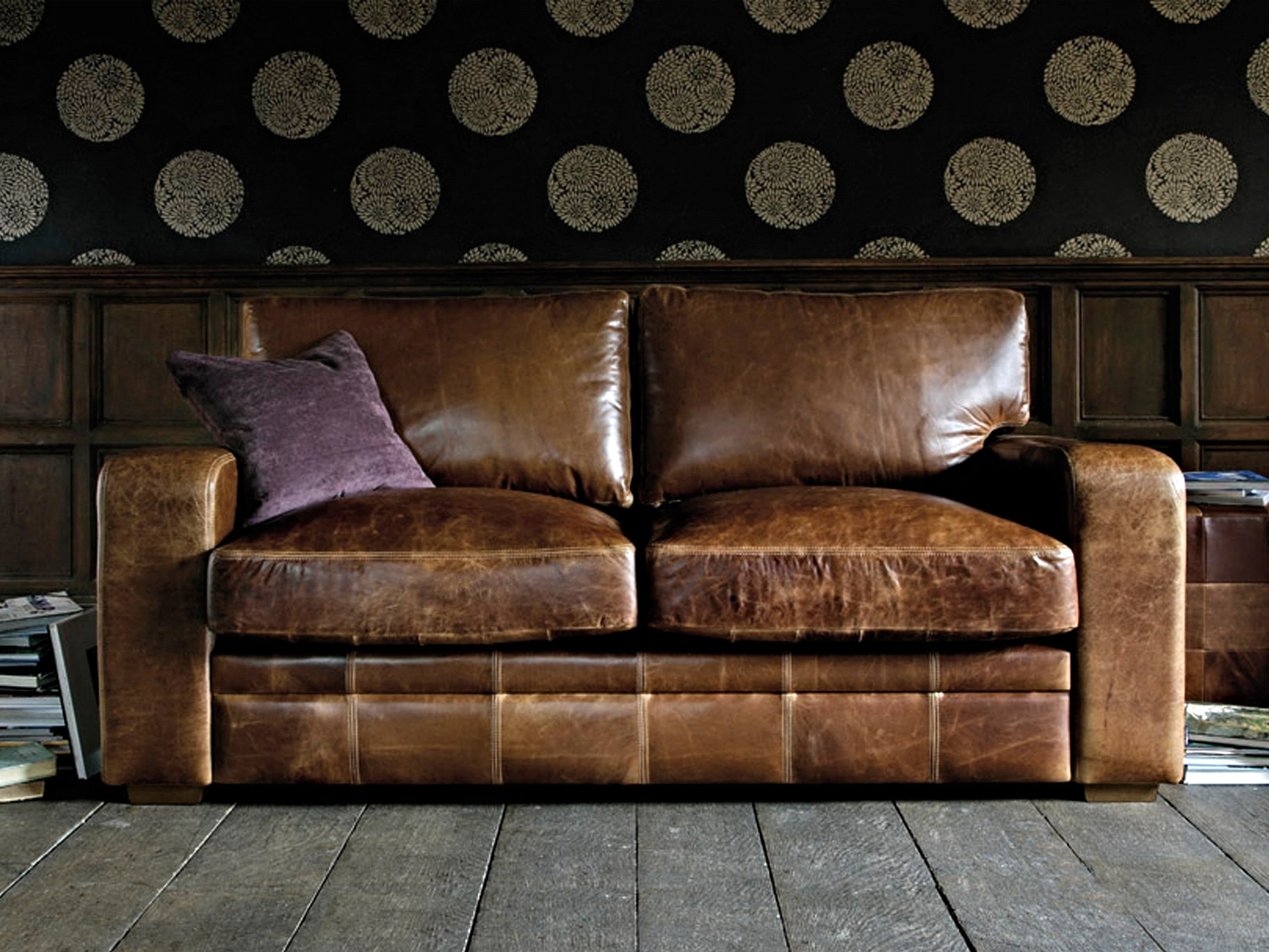 Коричневый кожаный диван