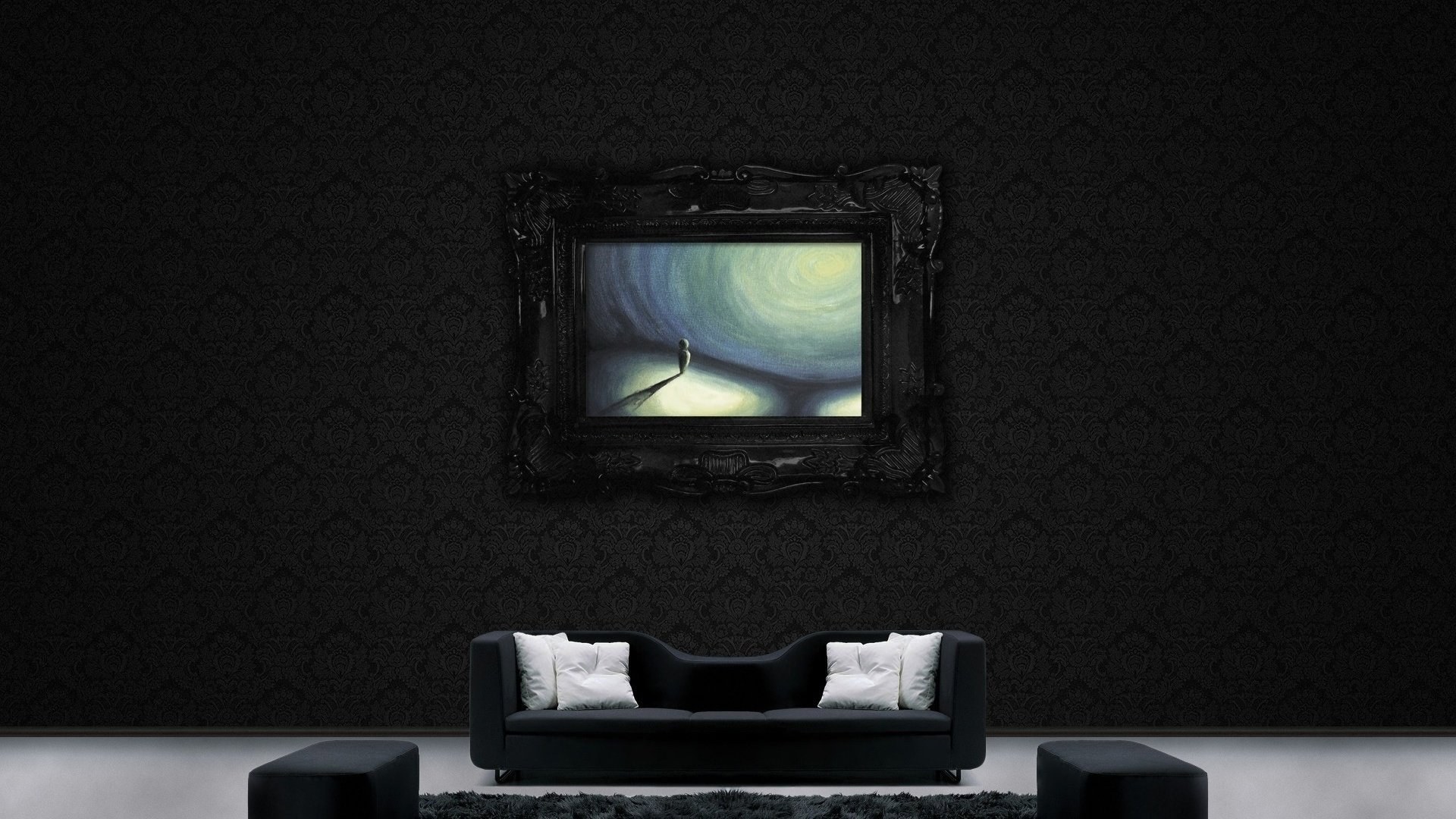 Картина на черном фоне в интерьере