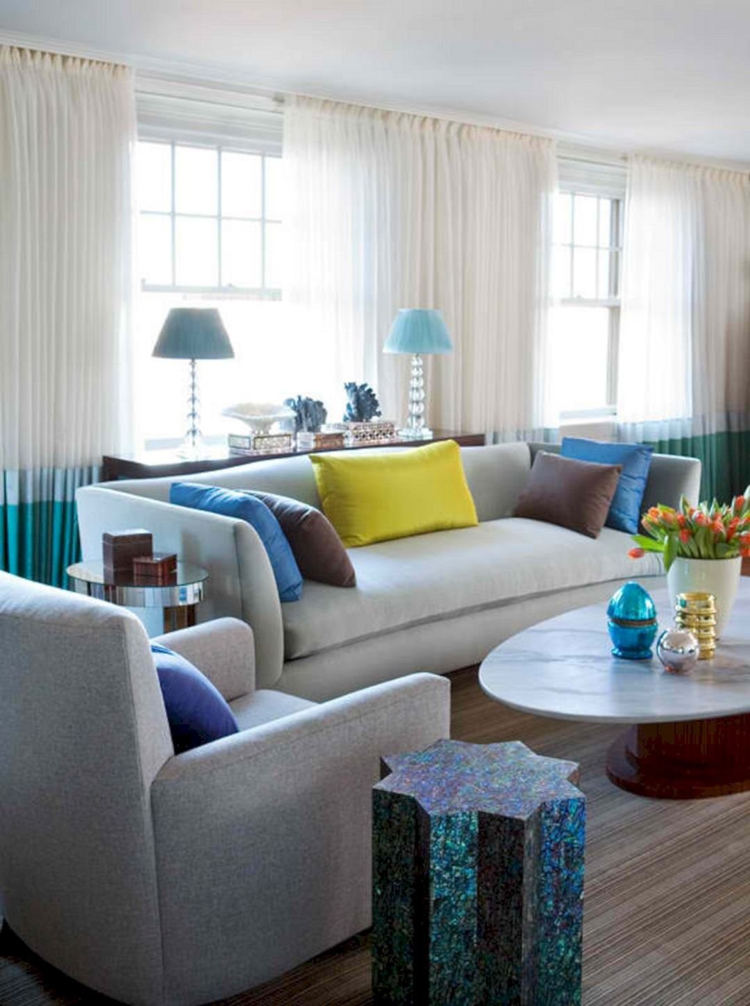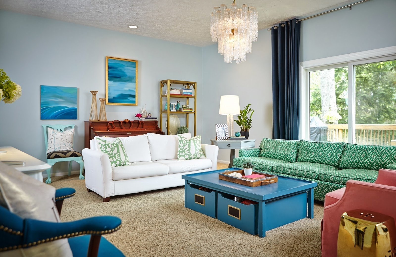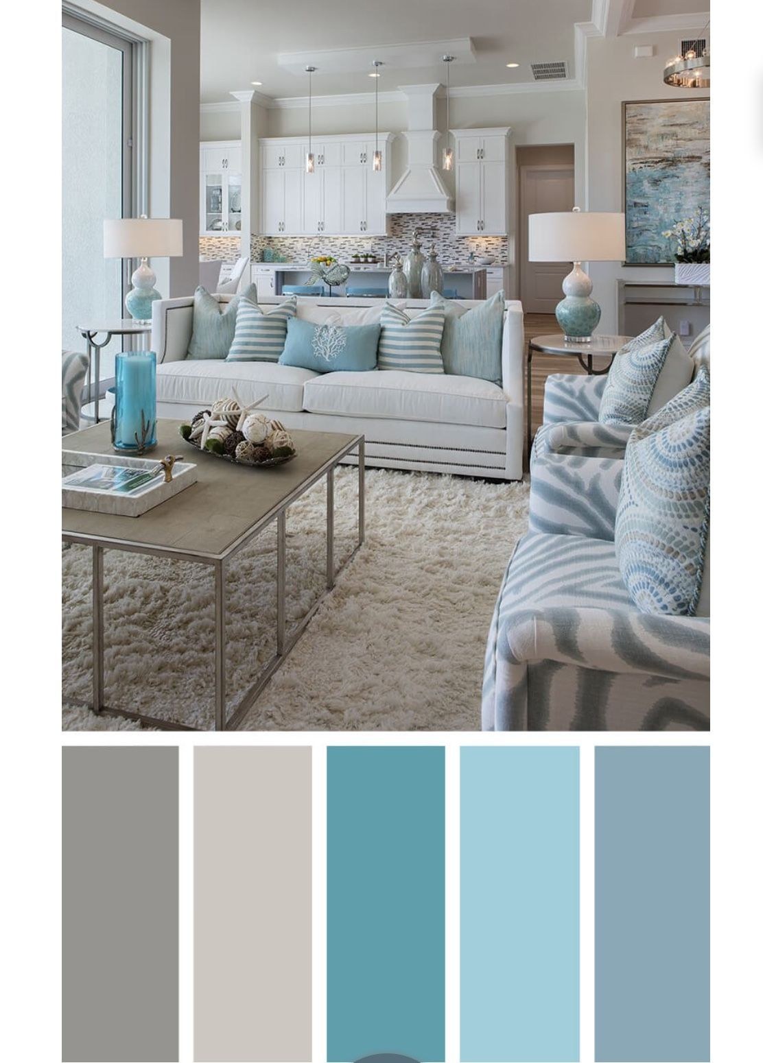Бирюза в интерьере гостиной