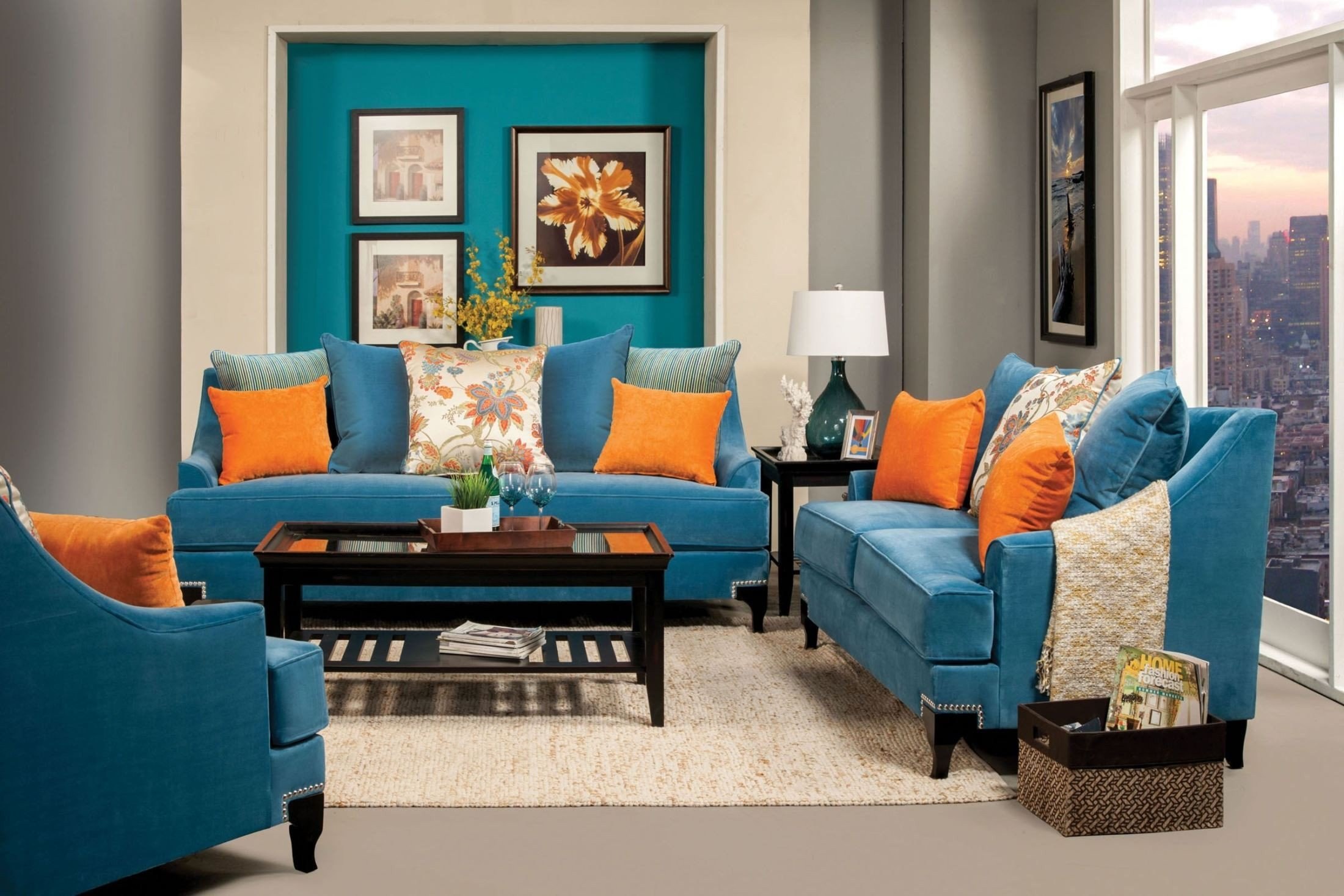 Бирюза и оранжевый в интерьере