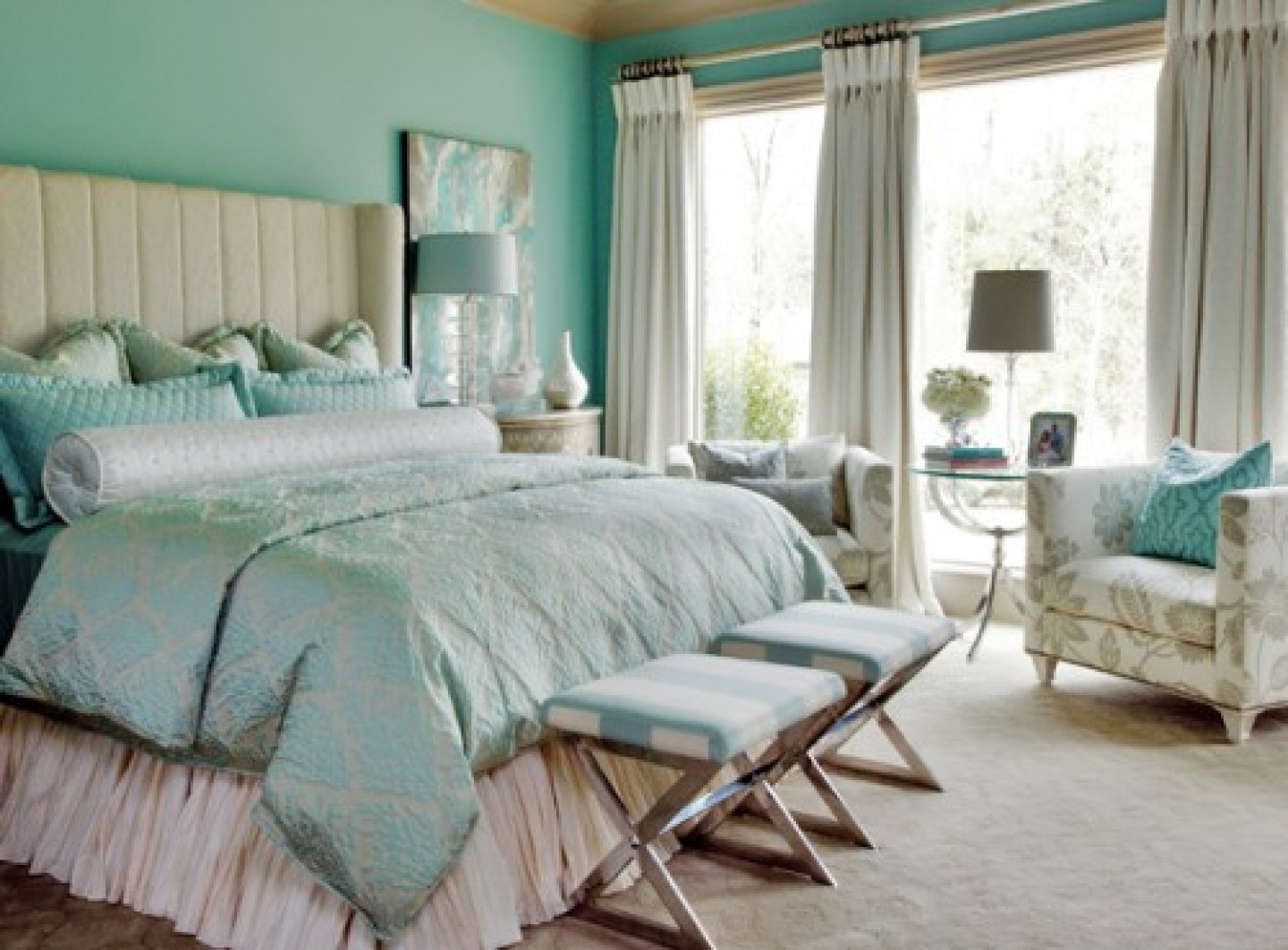 Бирюзовый текстиль в интерьере