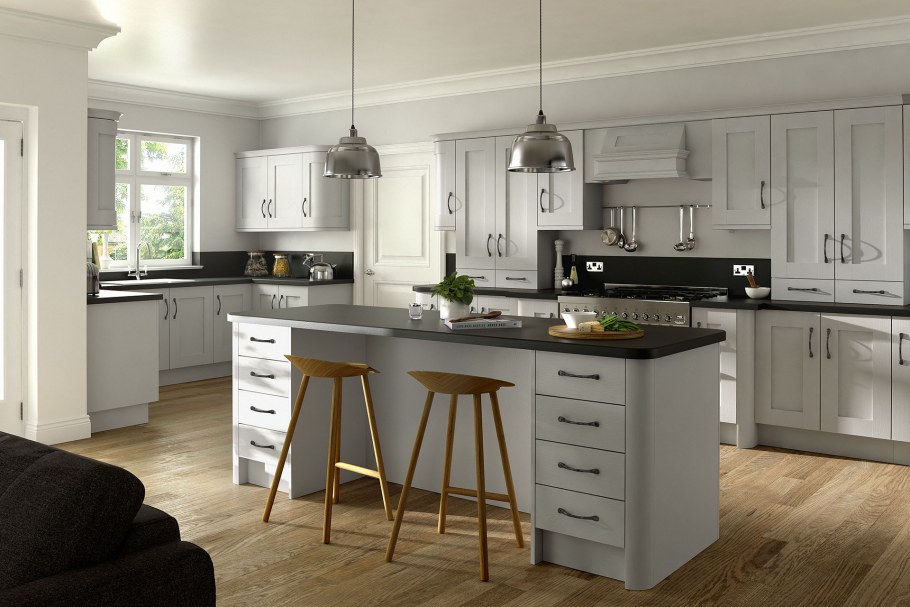 Интерьер для кухни со светло серой мебелью (51 фото)
