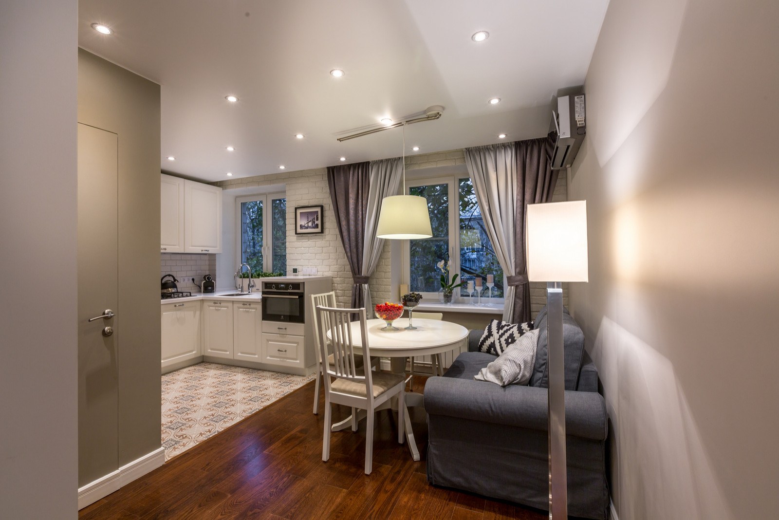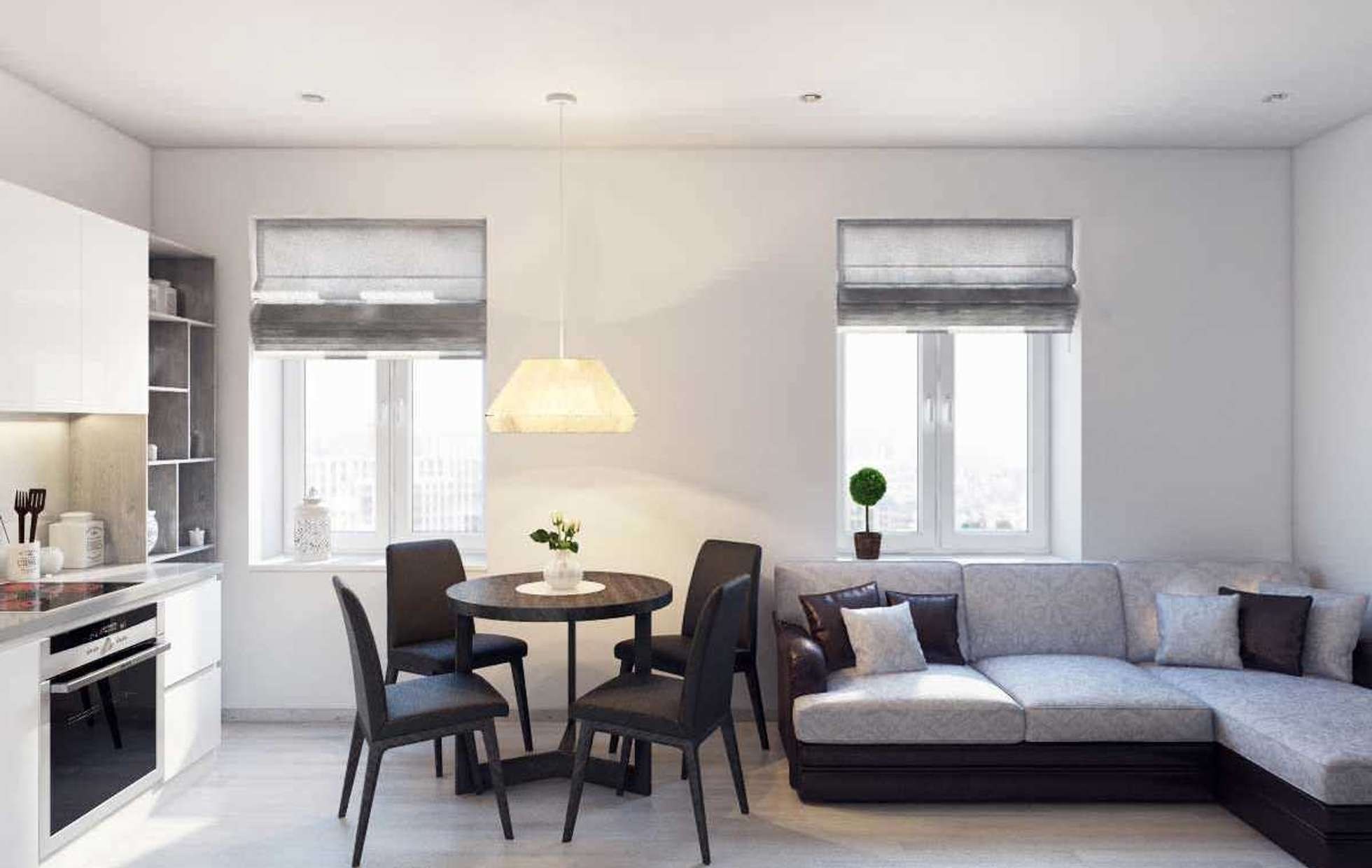 Кухня гостиная с тремя окнами