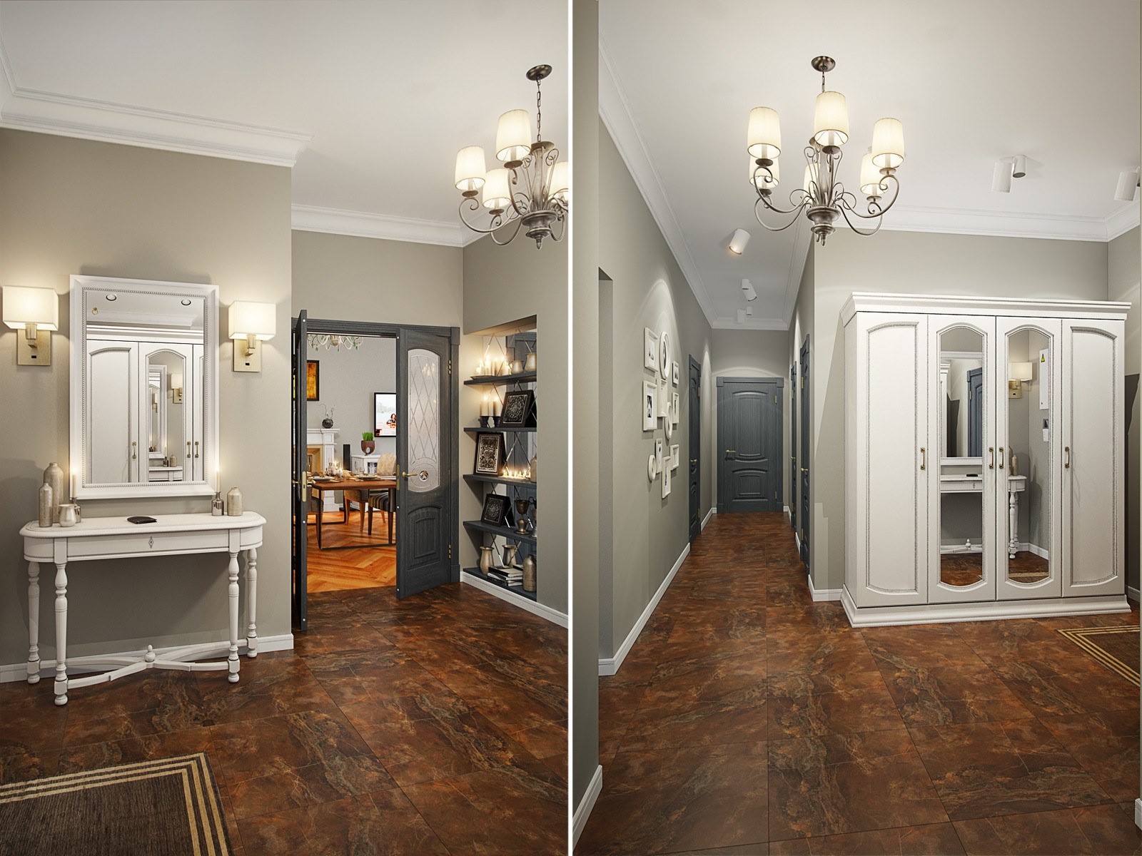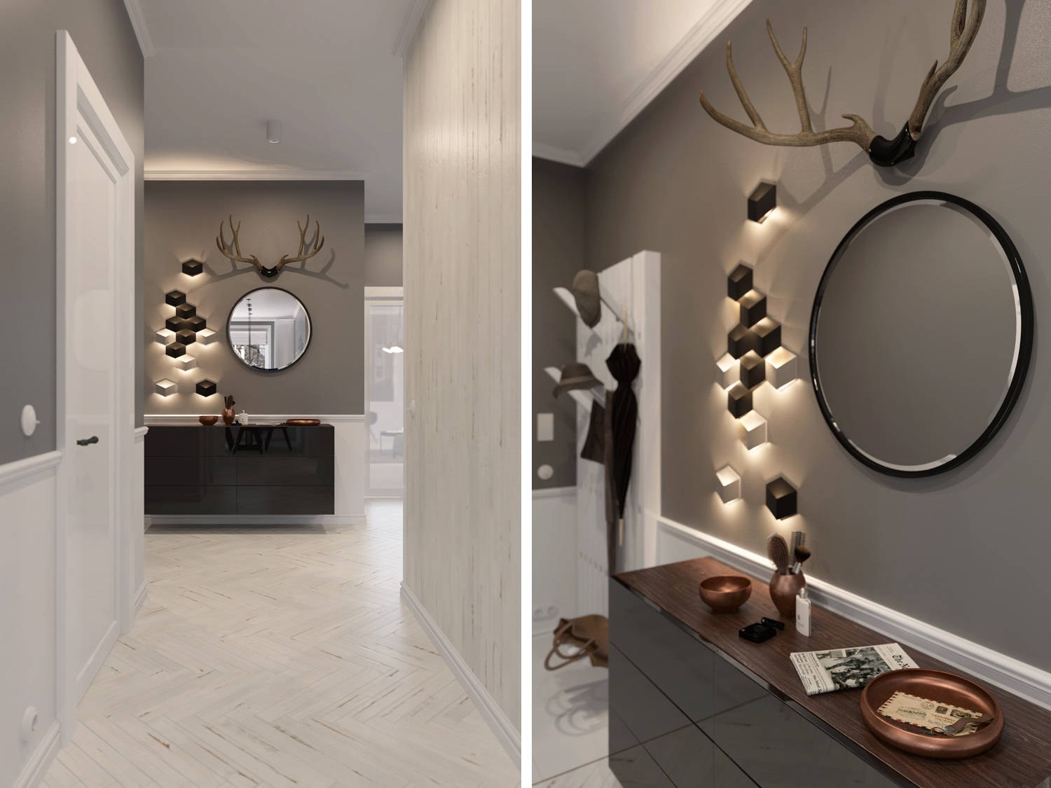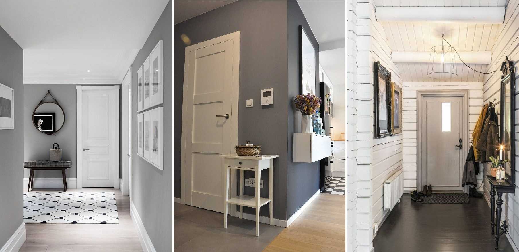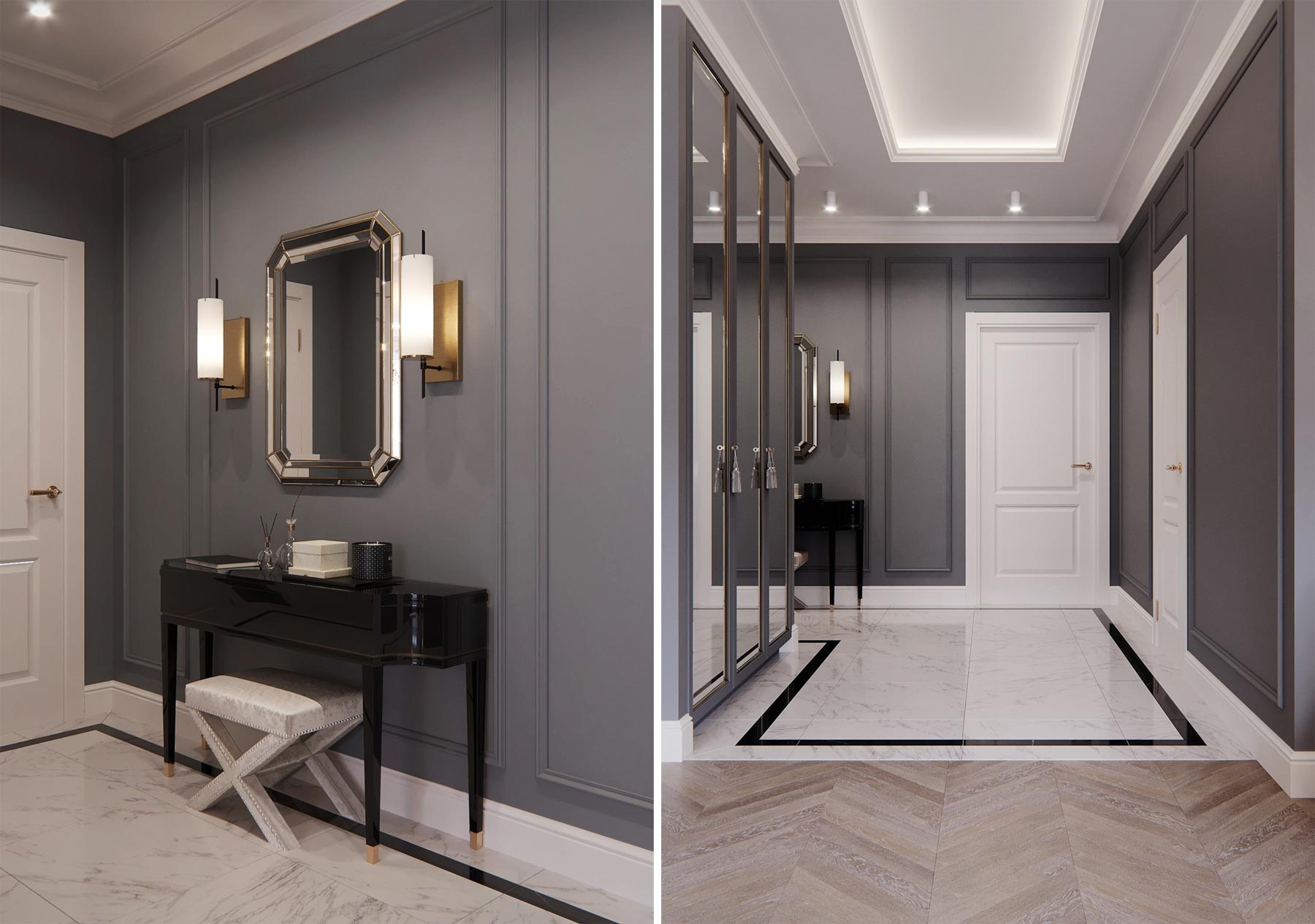 Кофейные стены с жёлтыми акцентами в интерьере прихожей