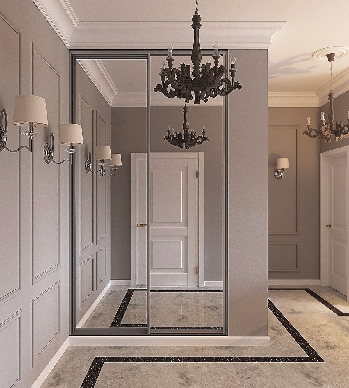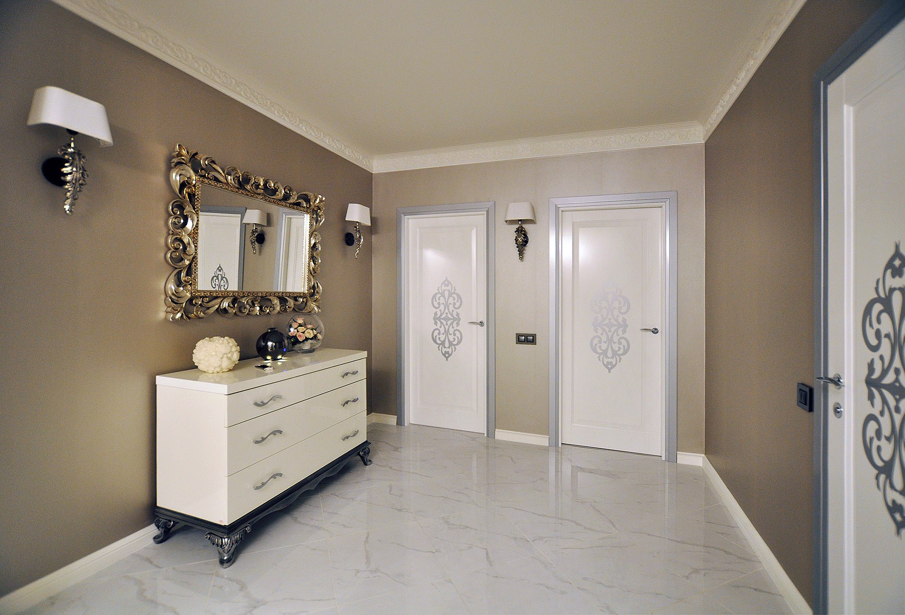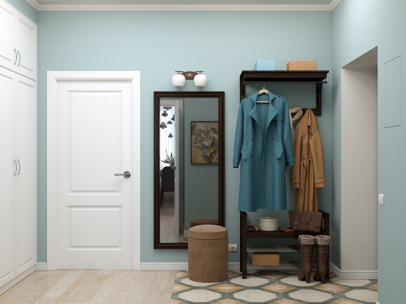 Кофейные стены с жёлтыми акцентами в интерьере прихожей