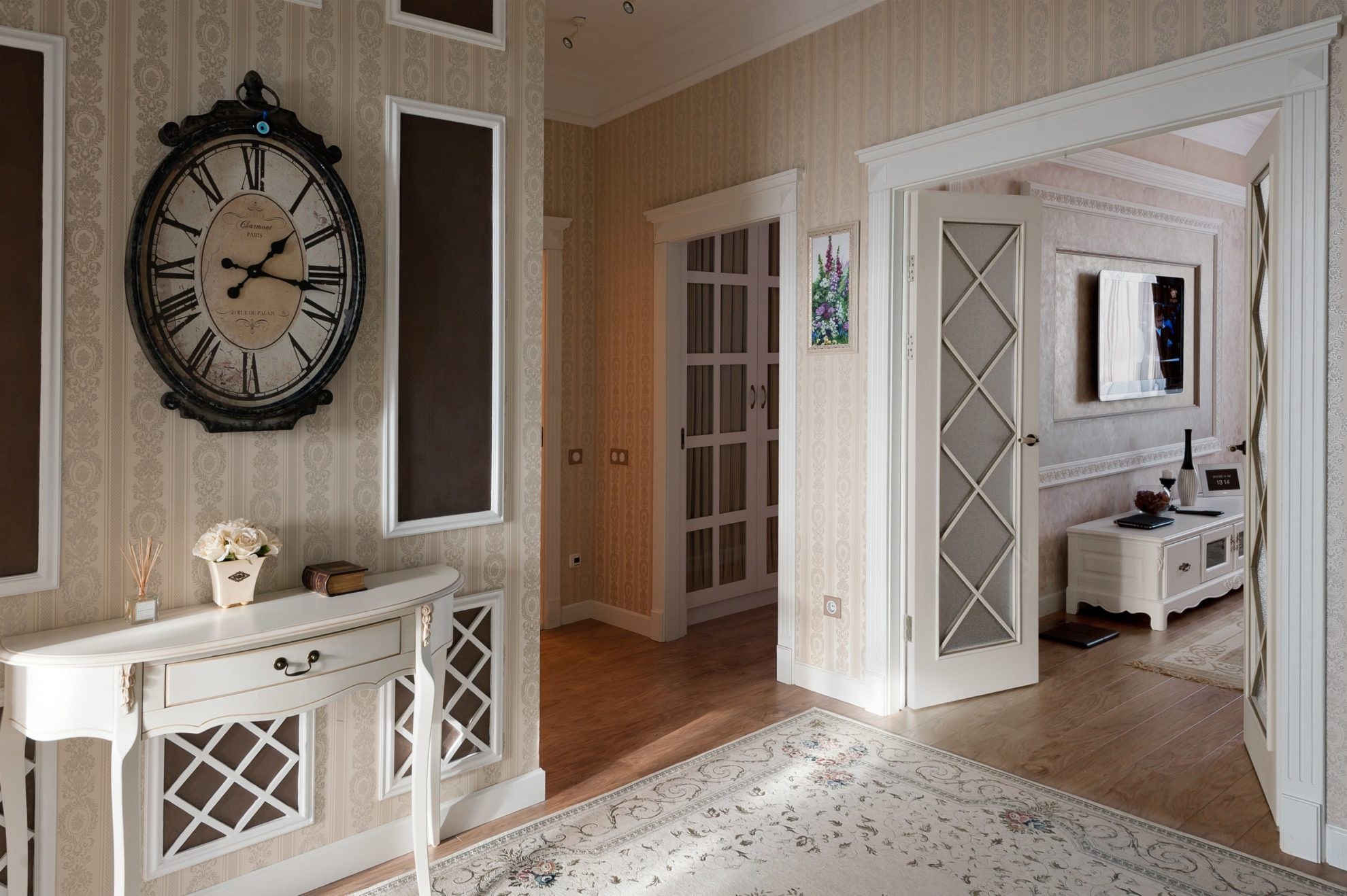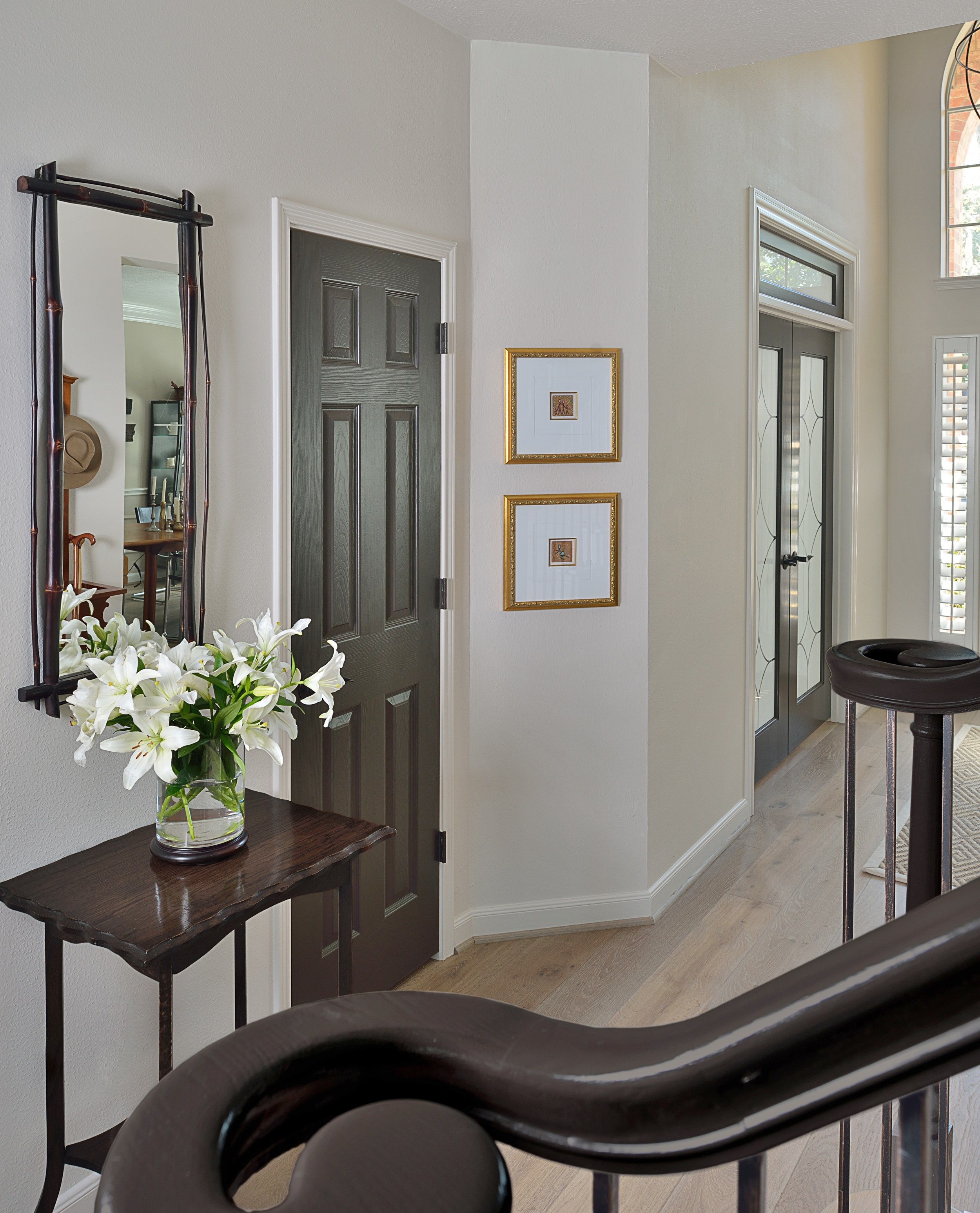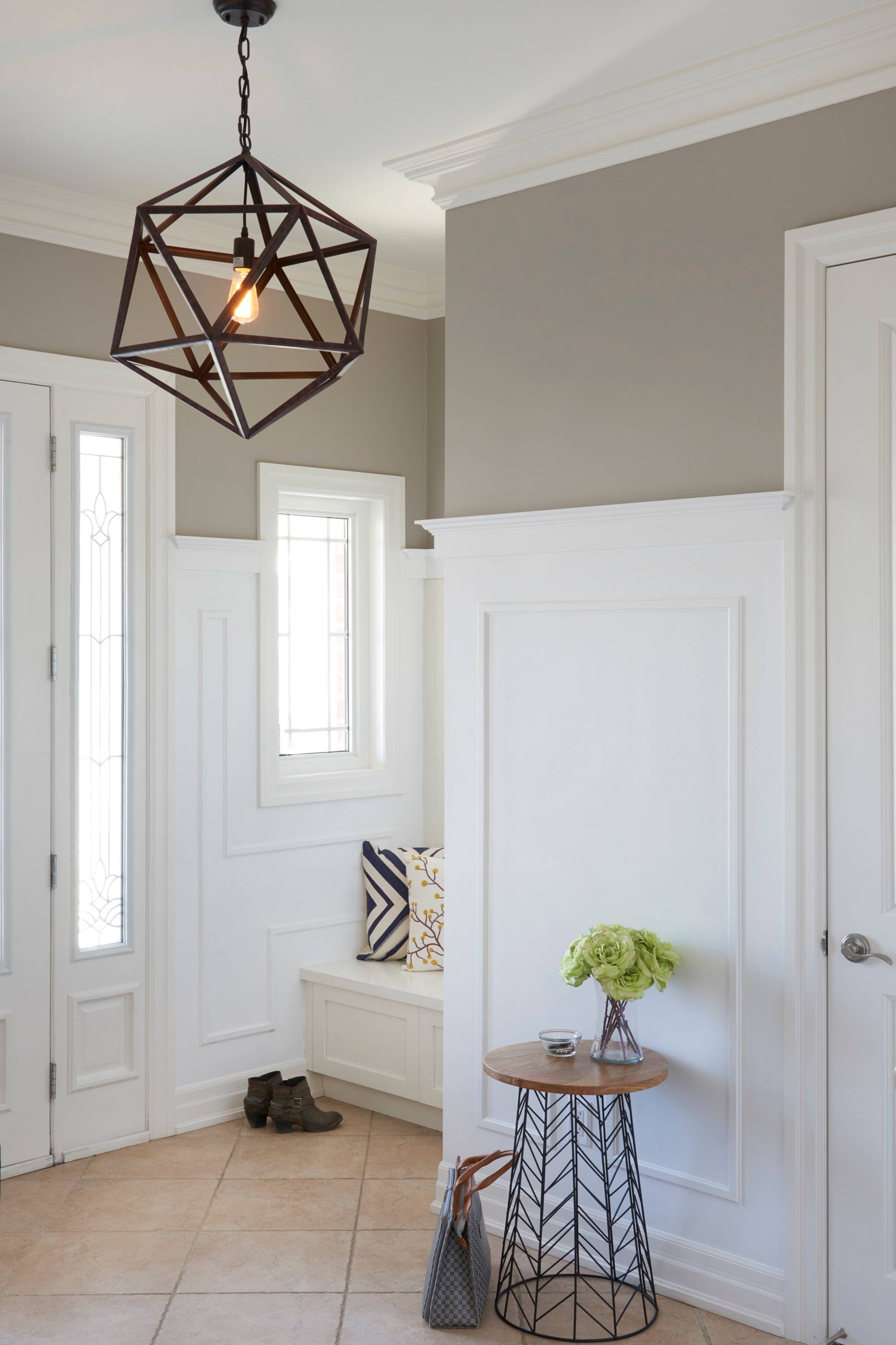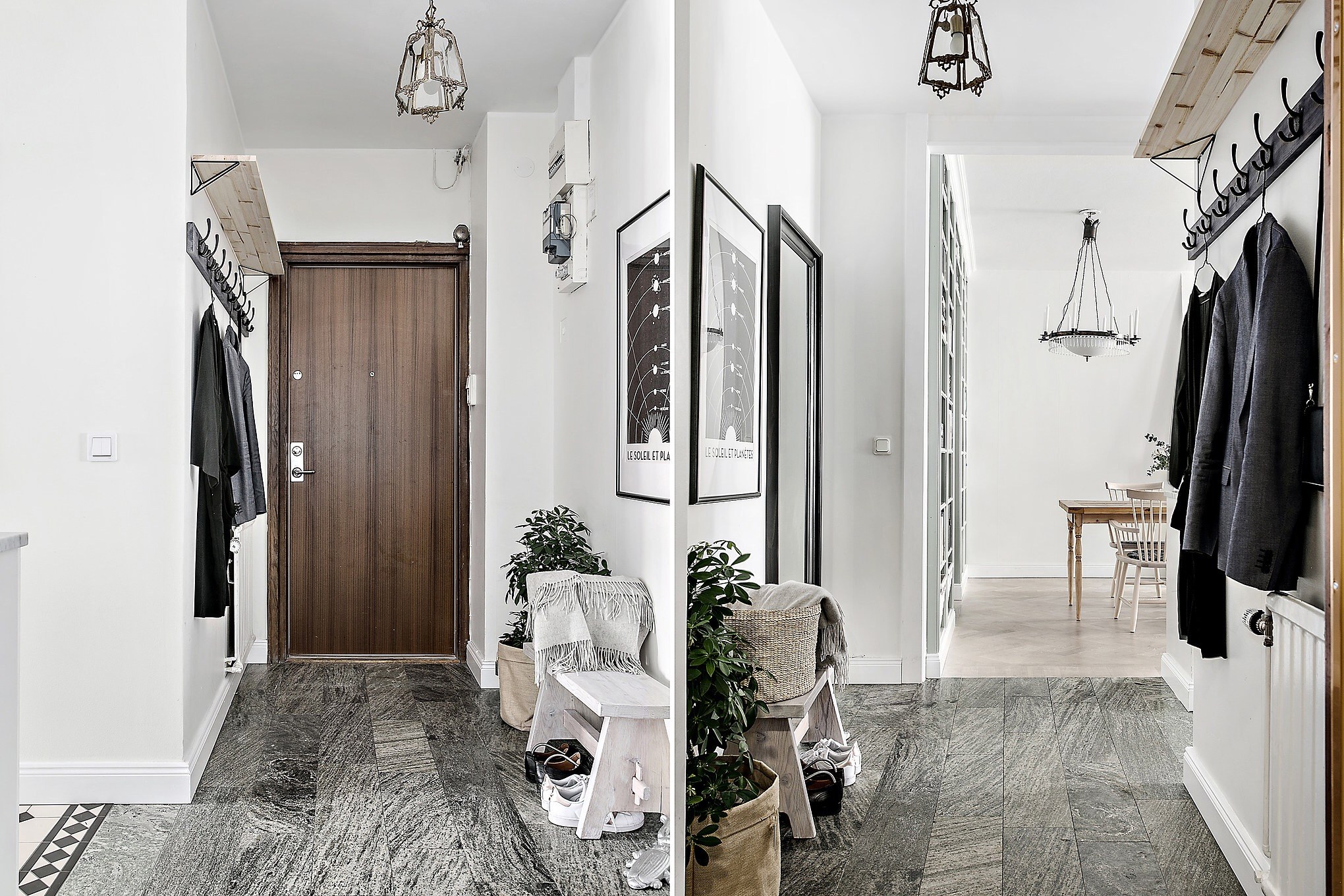 Кофейные стены с жёлтыми акцентами в интерьере прихожей