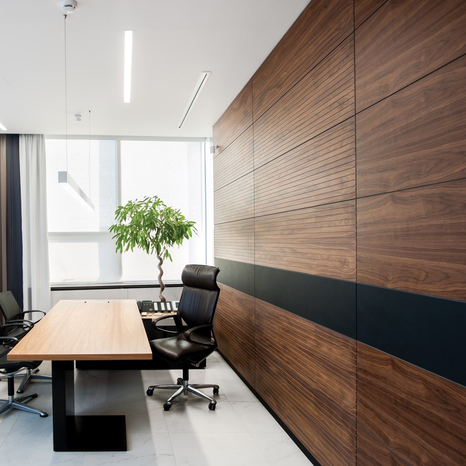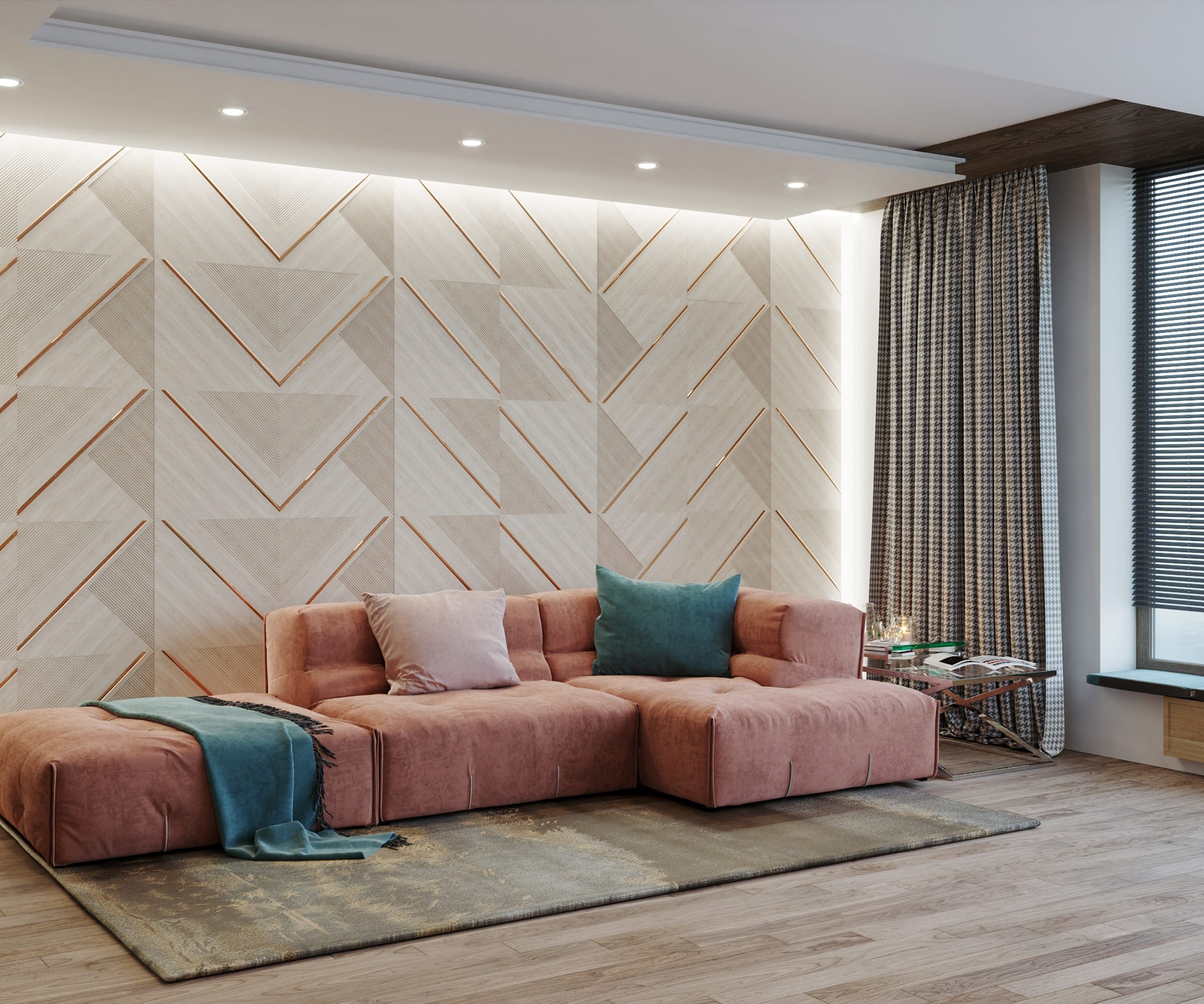 Гостиная с деревянными рейками