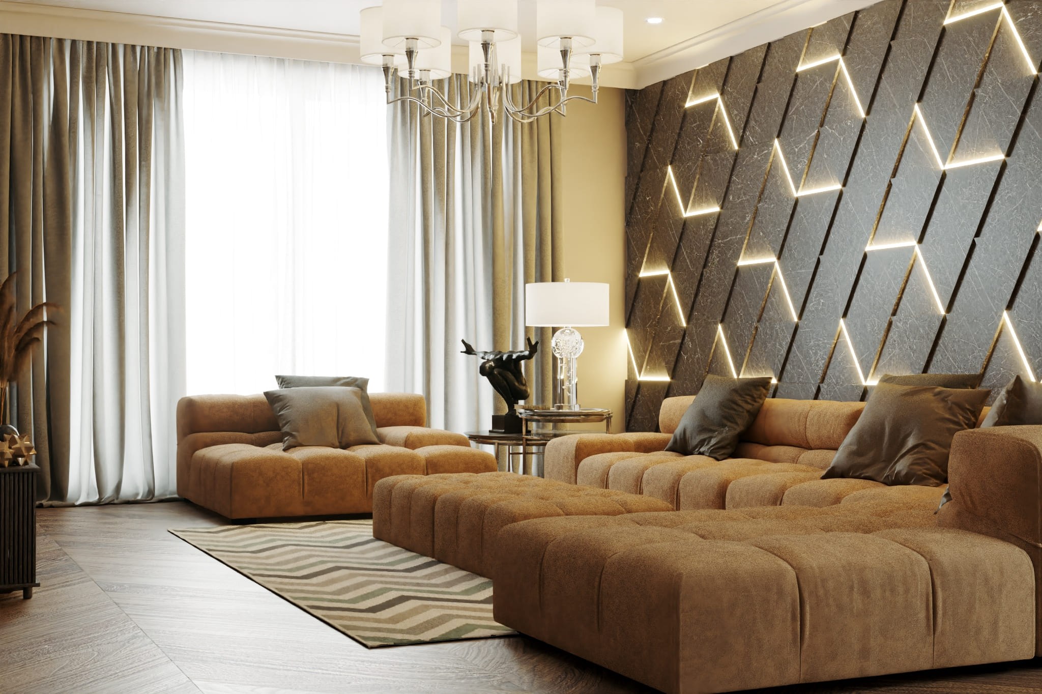 Стеновые панели для гостиной в интерьере (29 фото)