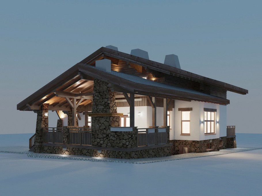 Дом 100 кв м проекты одноэтажных в стиле Шале