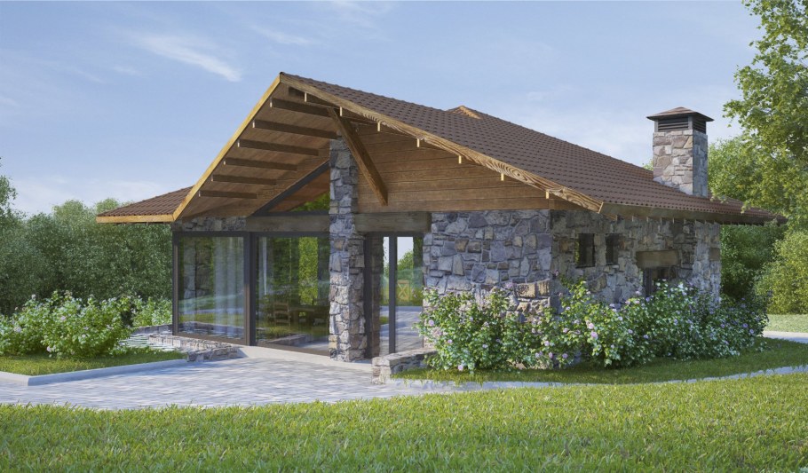 Дом Шале одноэтажный 100 кв.м из кирпича