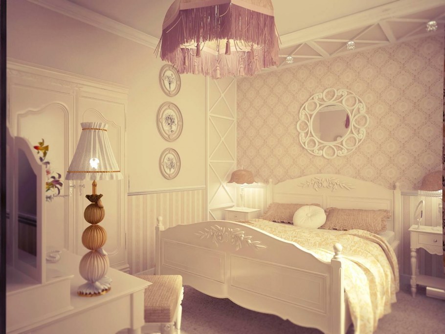 Спальни в стиле Прованс шебби молочный цвет розы