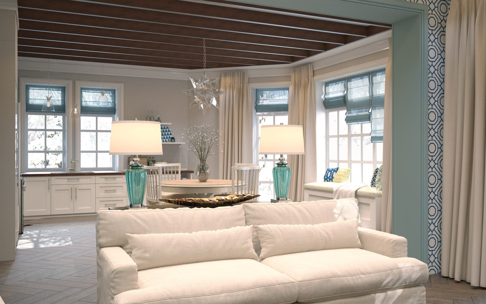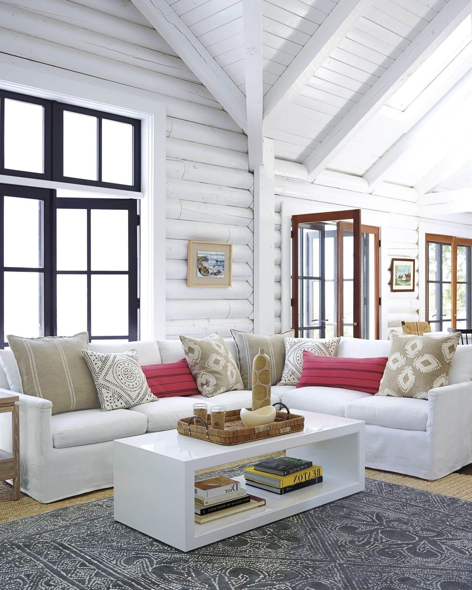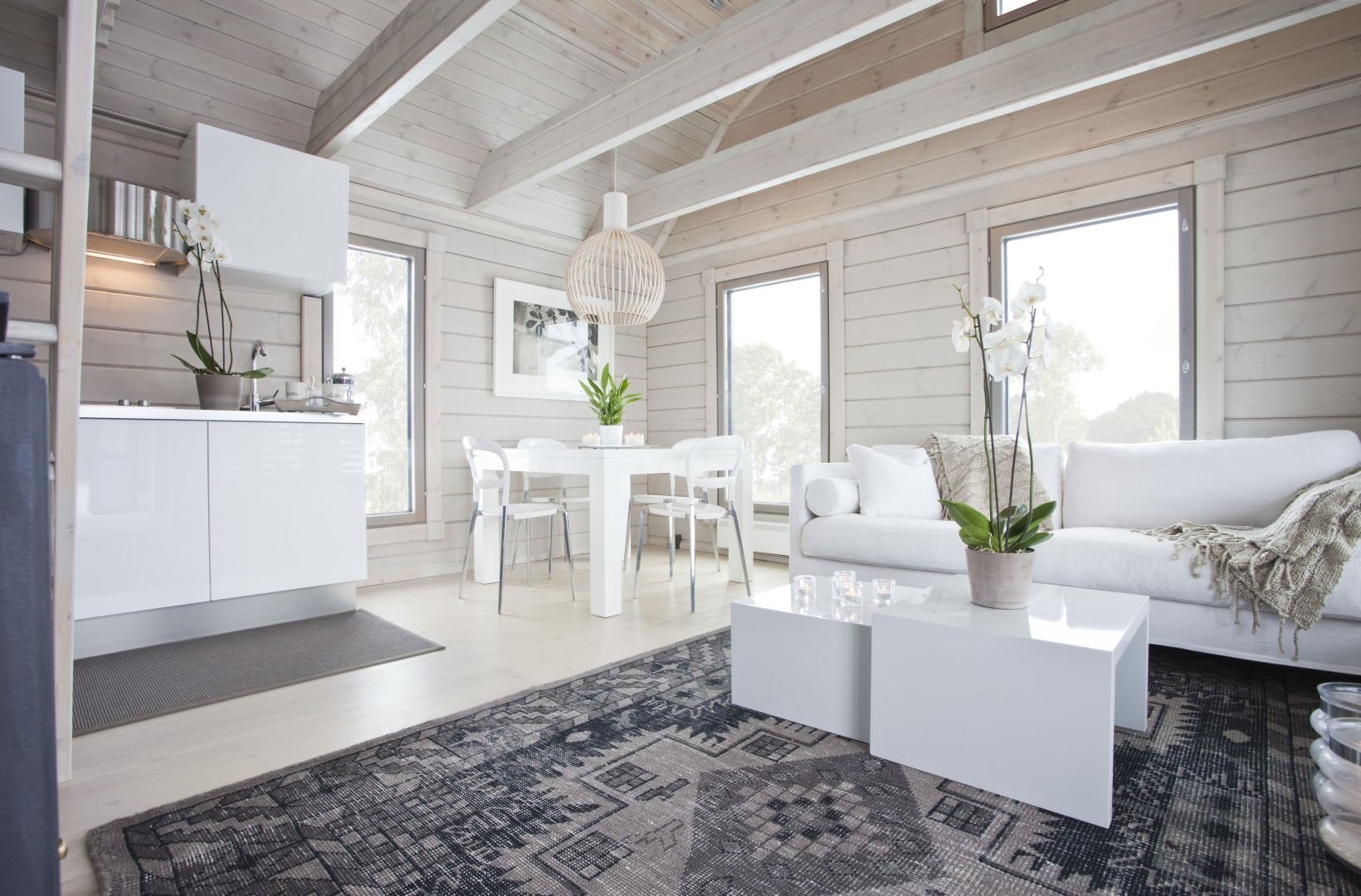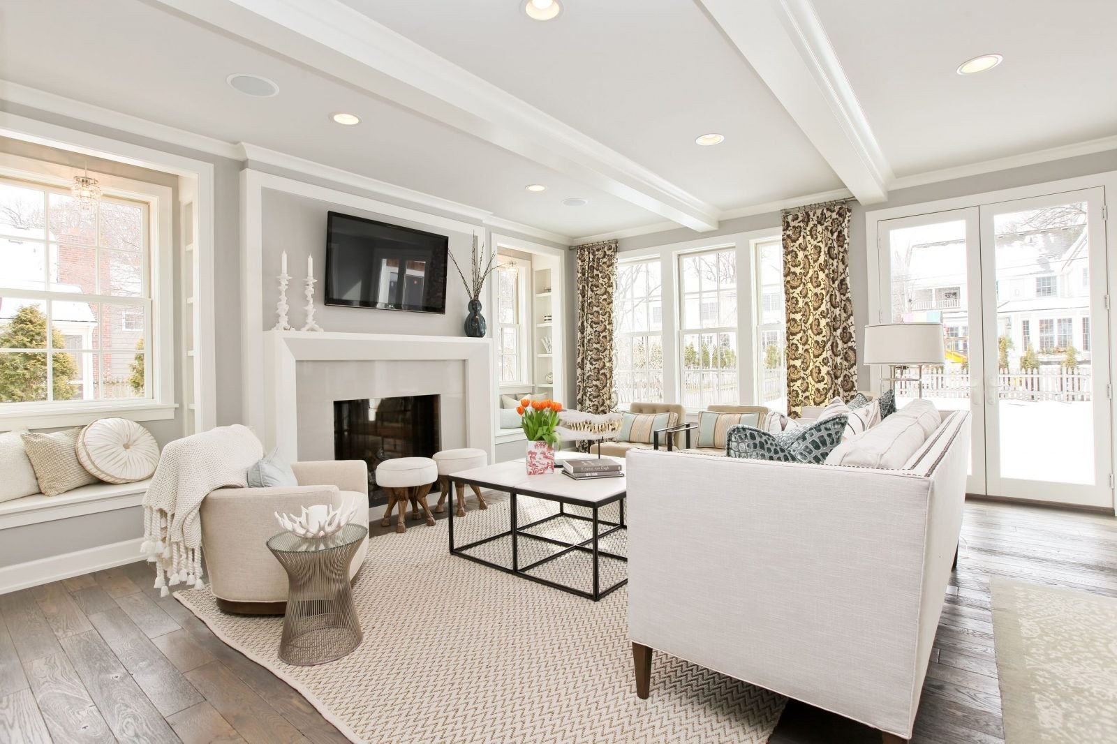 Гостиная в современном стиле в светлых тонах в загородном доме