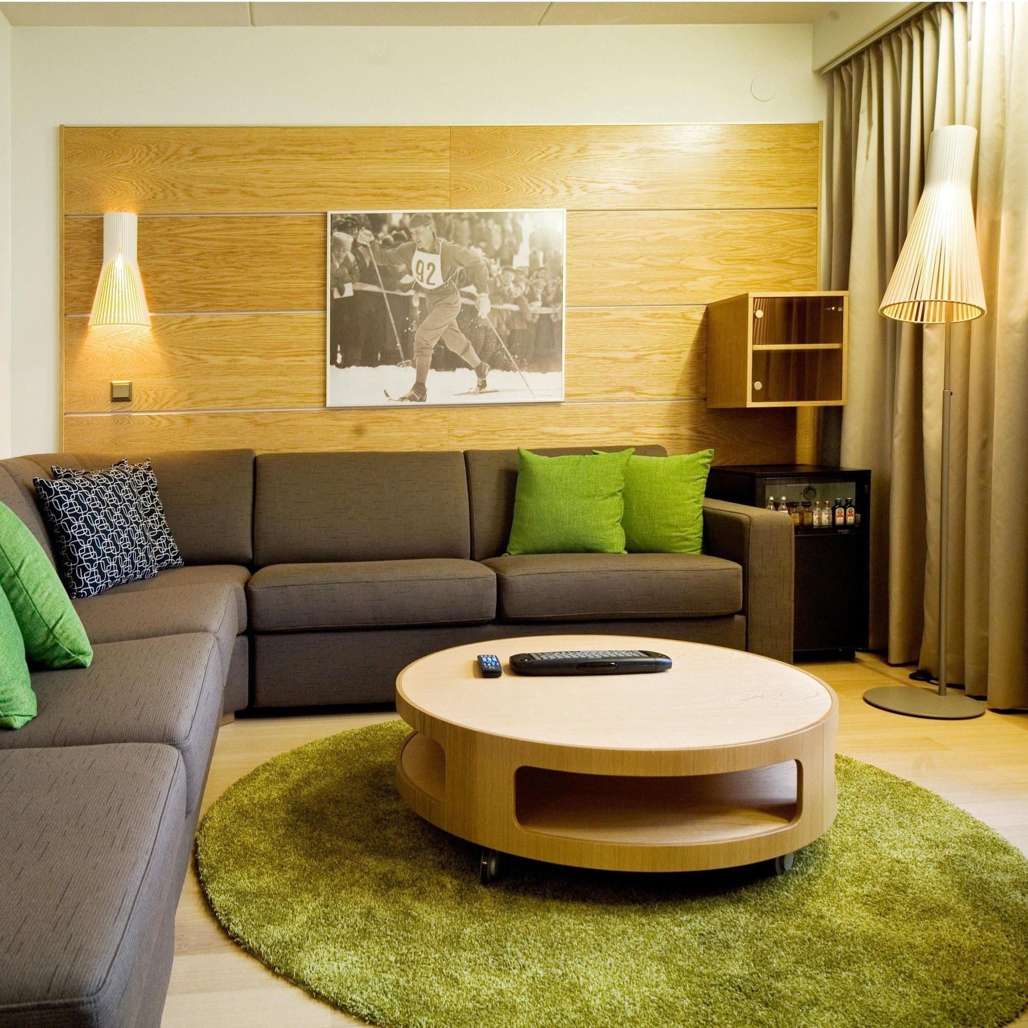 Зеленый ковер в интерьере