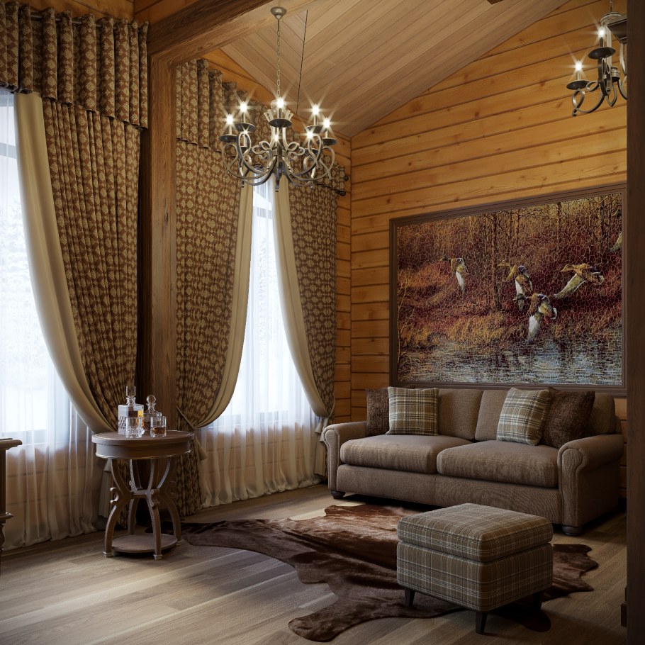 Интерьер гостиной в деревянном доме