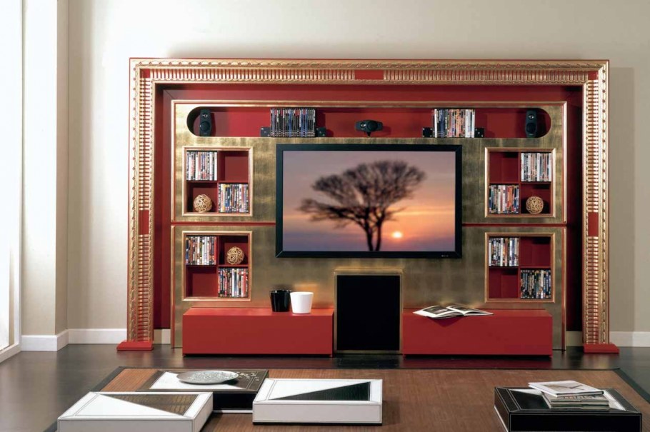 Телевизор на стене в гостиной варианты оформления с полками (33 фото)