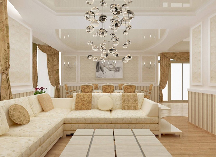 Гостиная в деревянном доме в светлых тонах (39 фото)