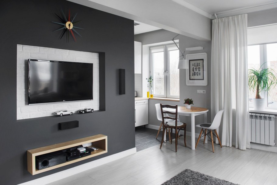 Телевизор на стене в гостиной варианты оформления (32 фото)