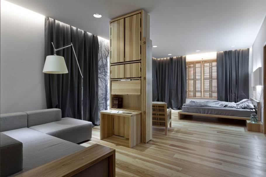 Зонирование гостиной и спальни 20 кв.м