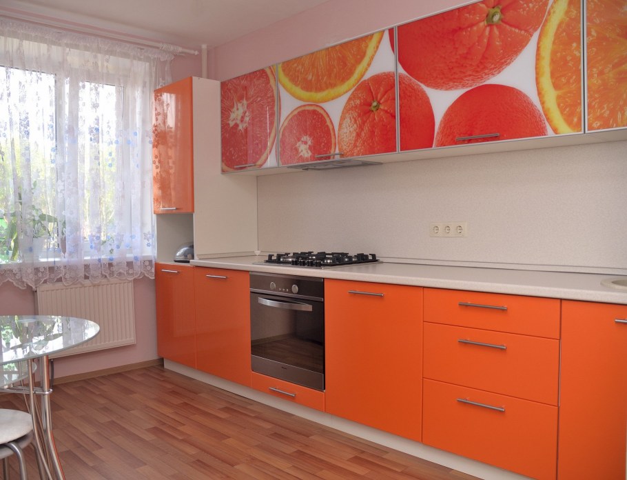 Кухня маленькая угловая коричневого цвета и оранжевого