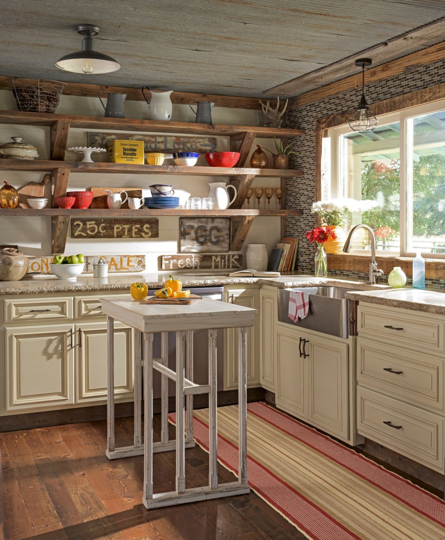 Кухня-гостиная бревенчатого дома в стиле Прованс