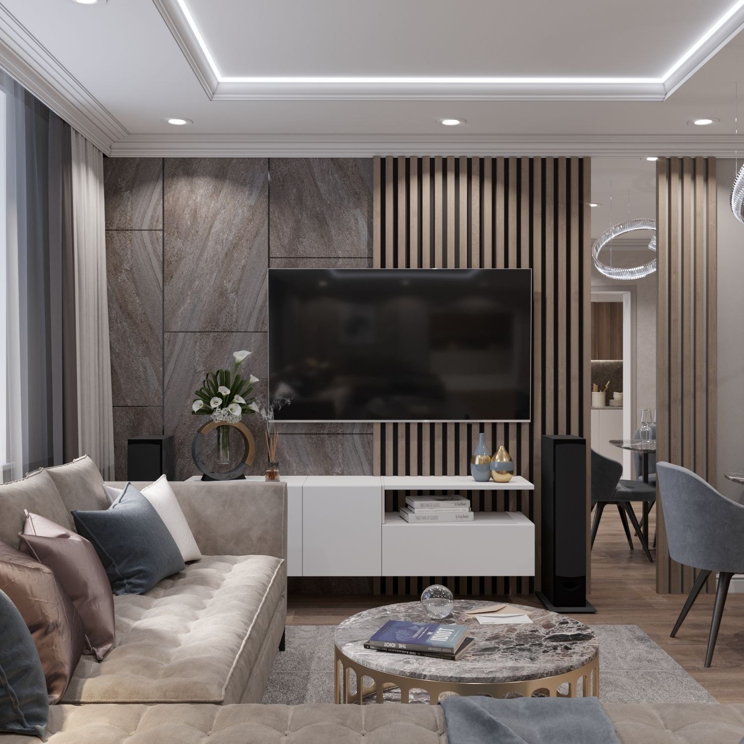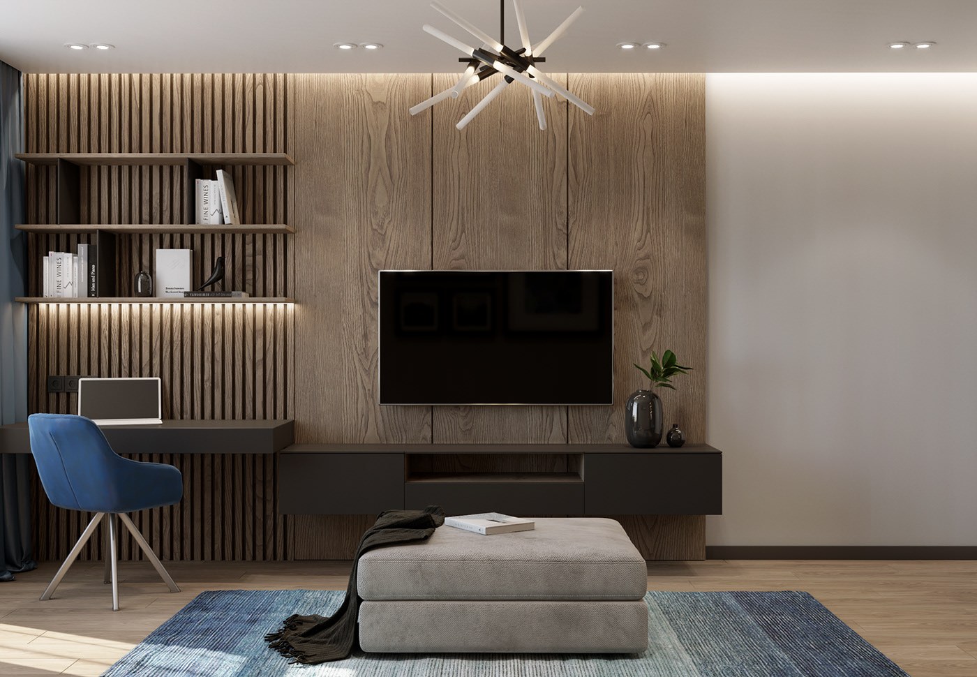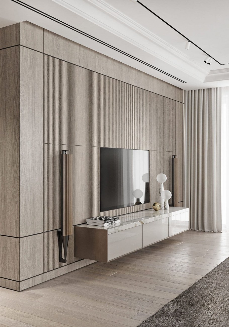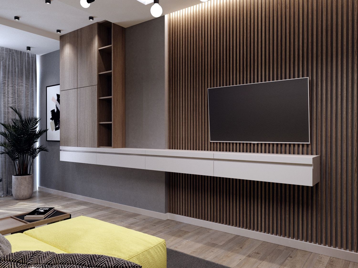 Телестена в гостиной в современном стиле фото и цены в Москве