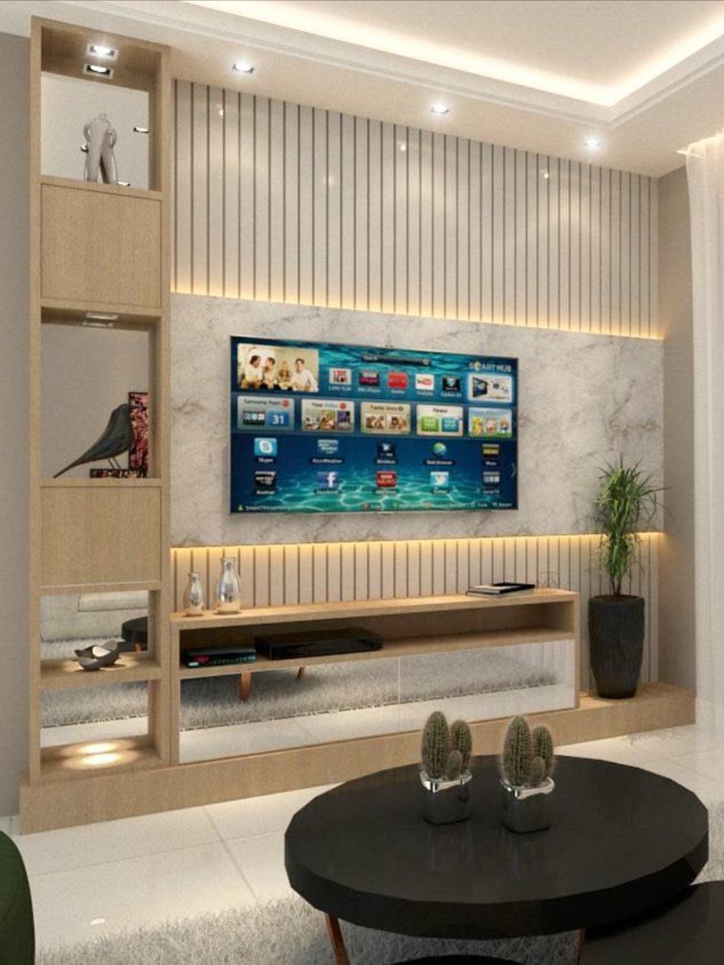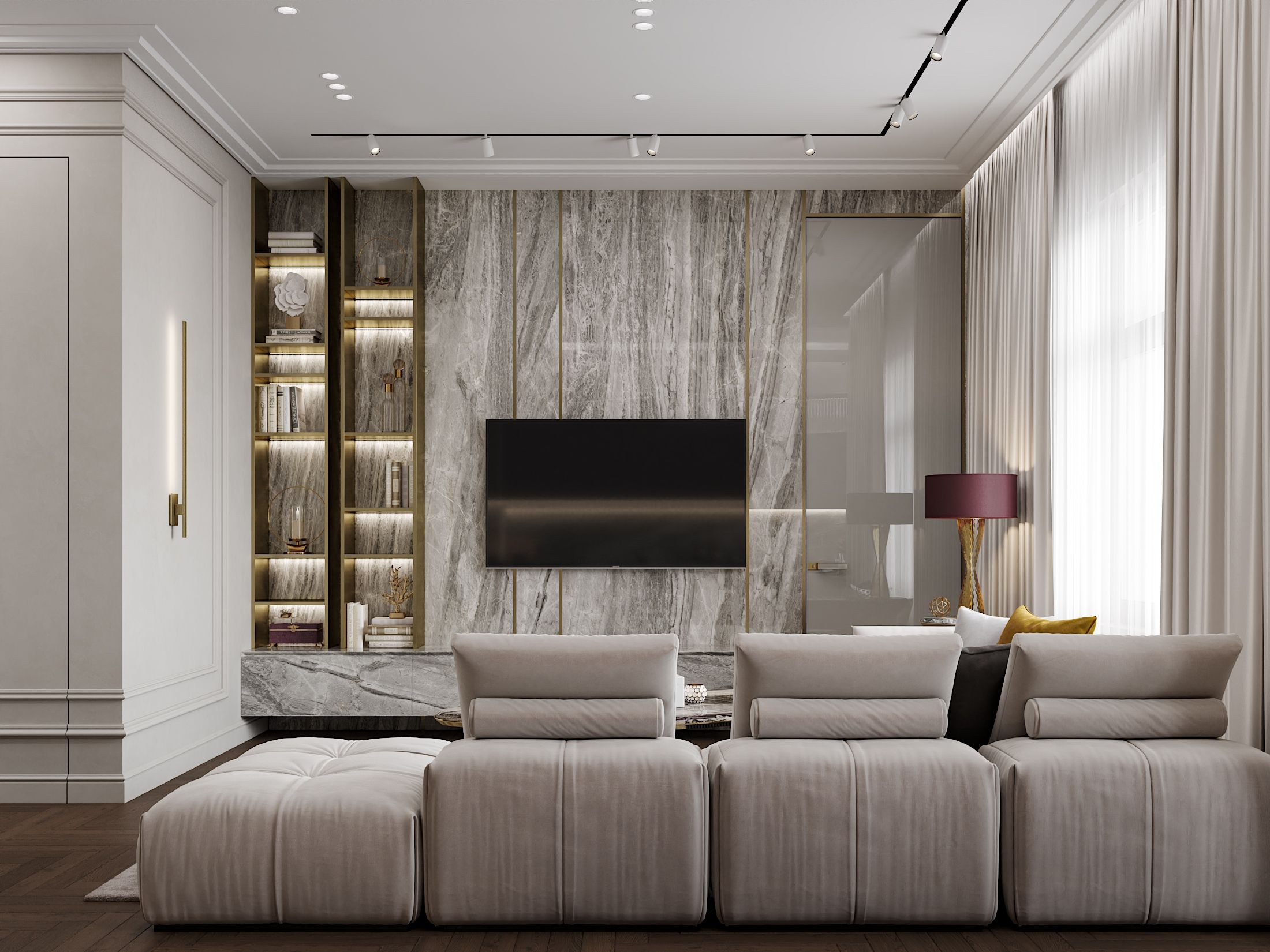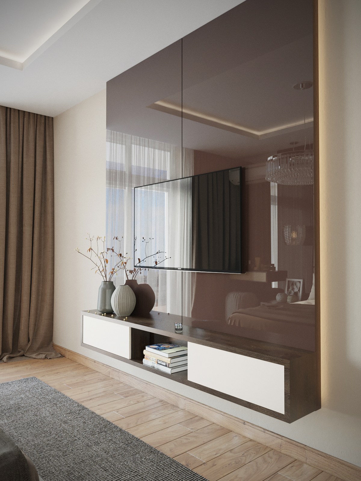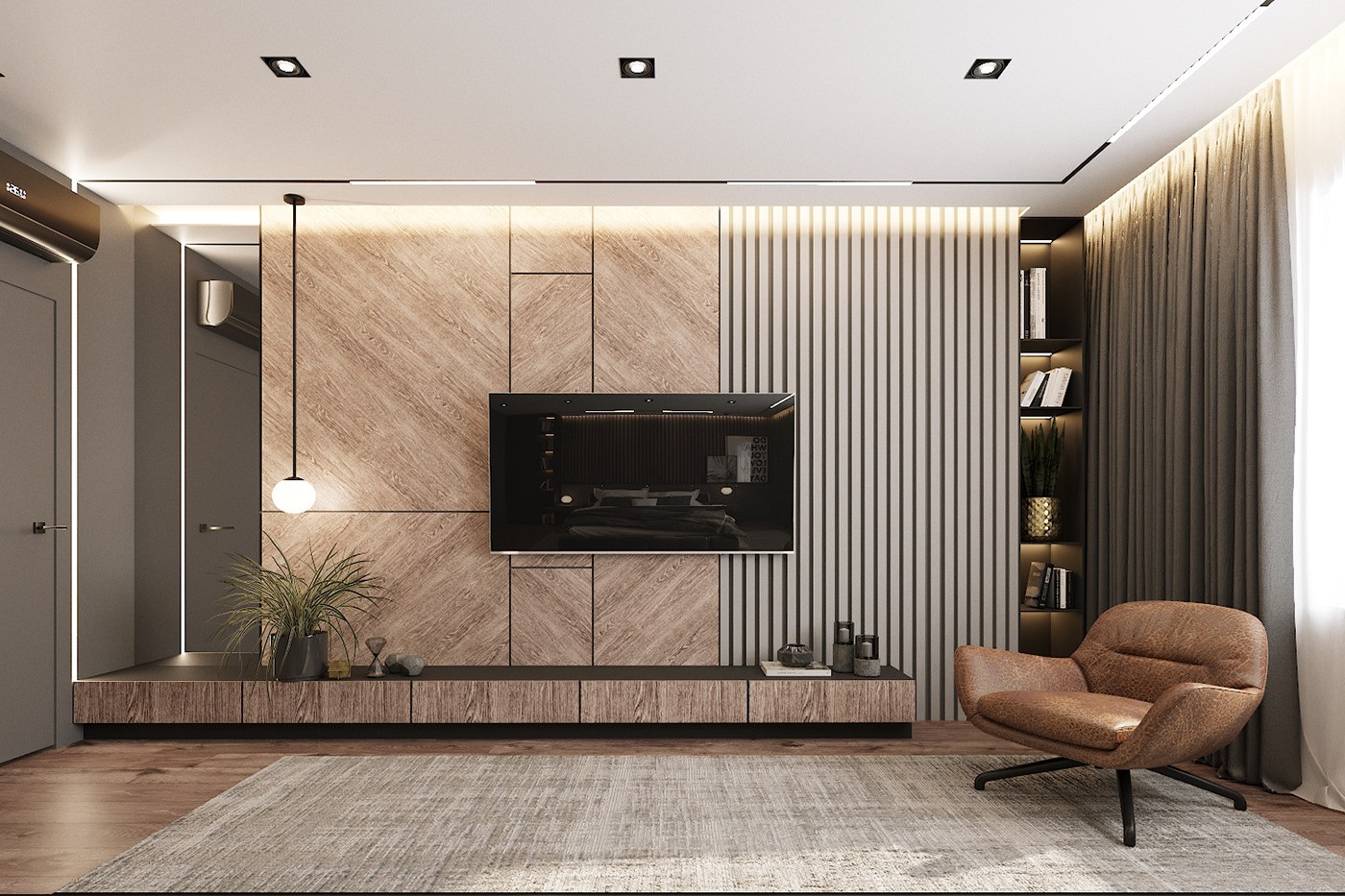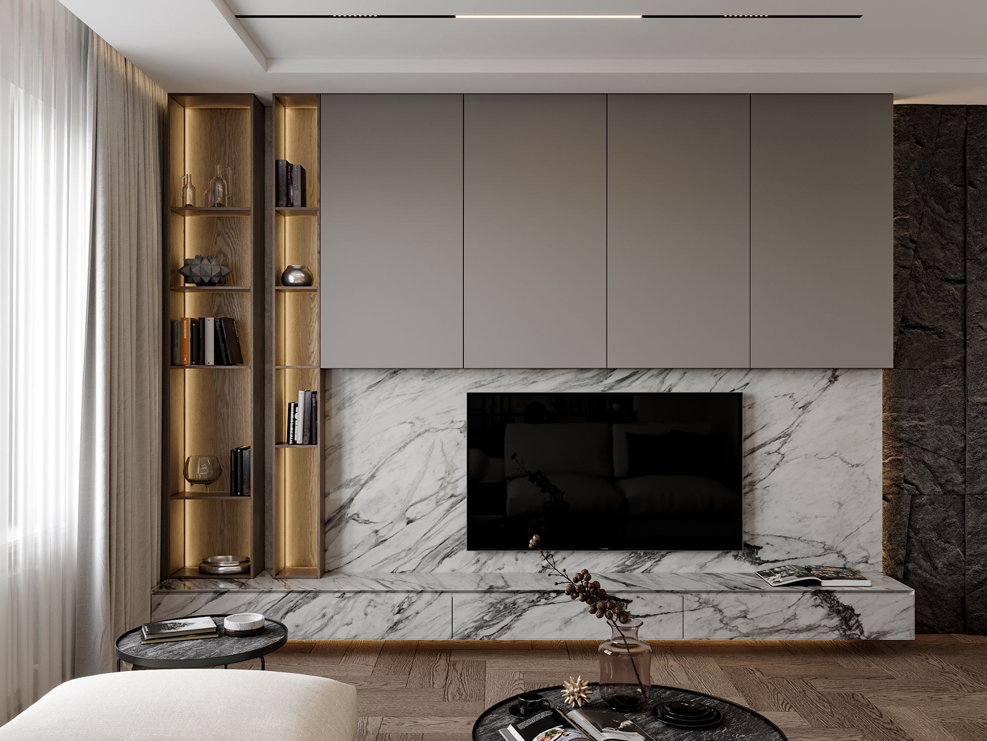 Телестена в гостиной в современном стиле фото и цены в Москве