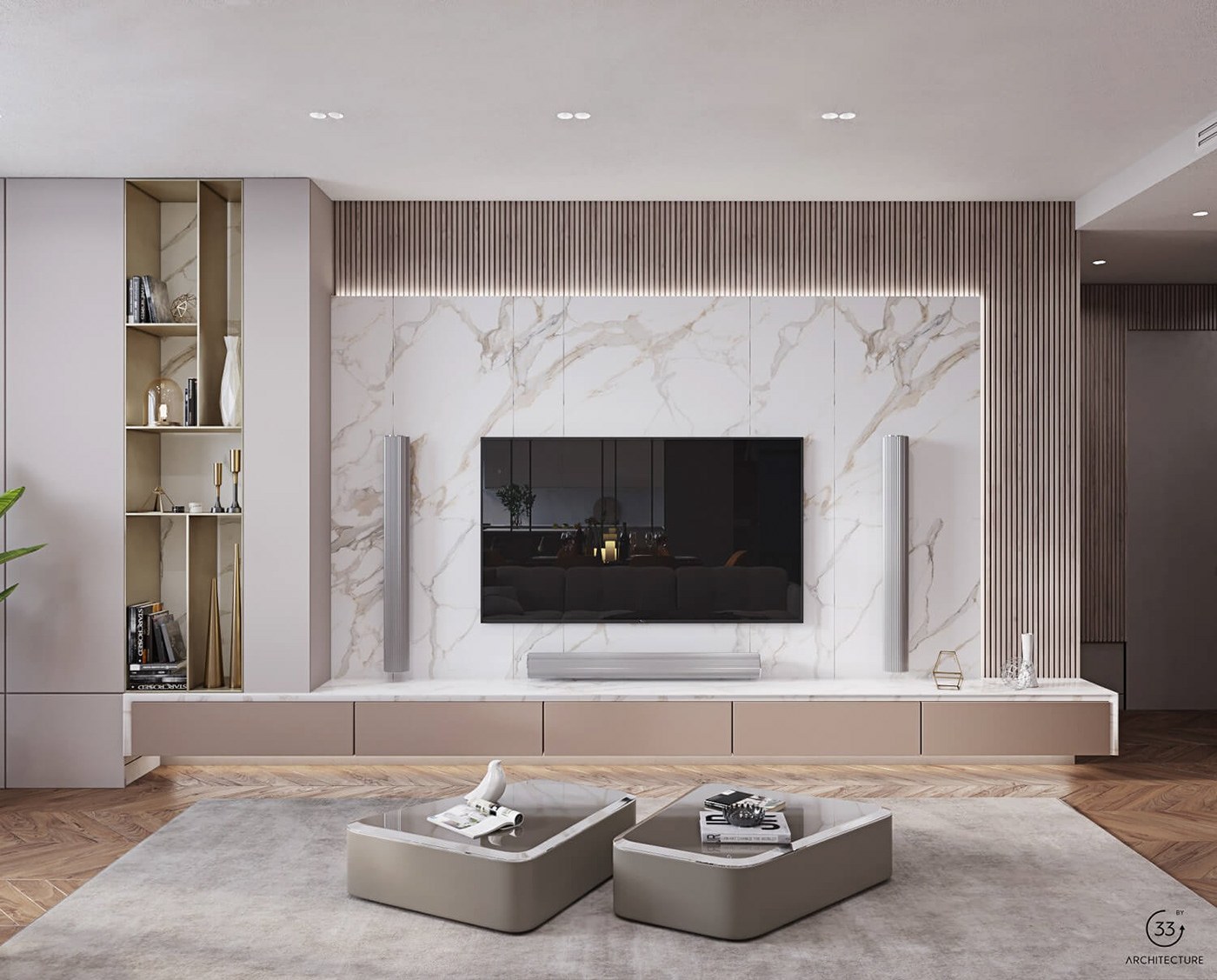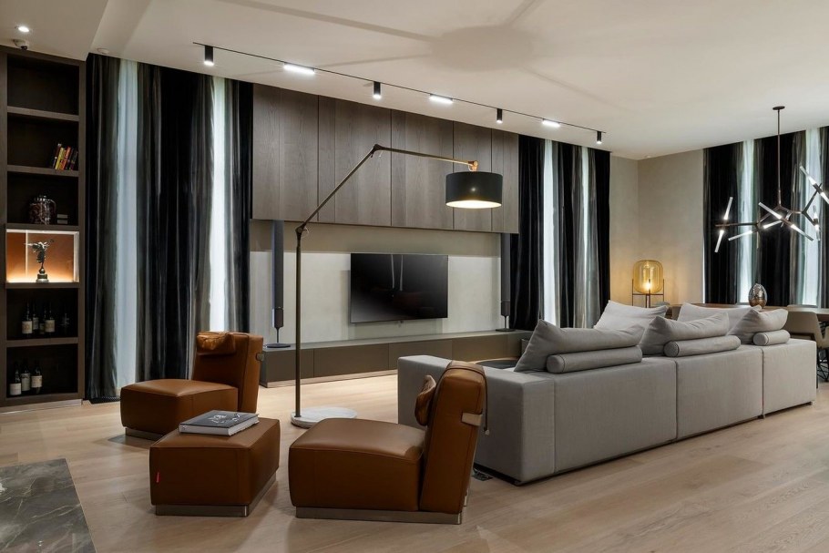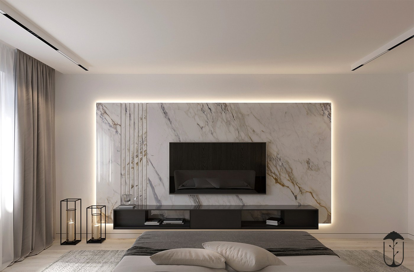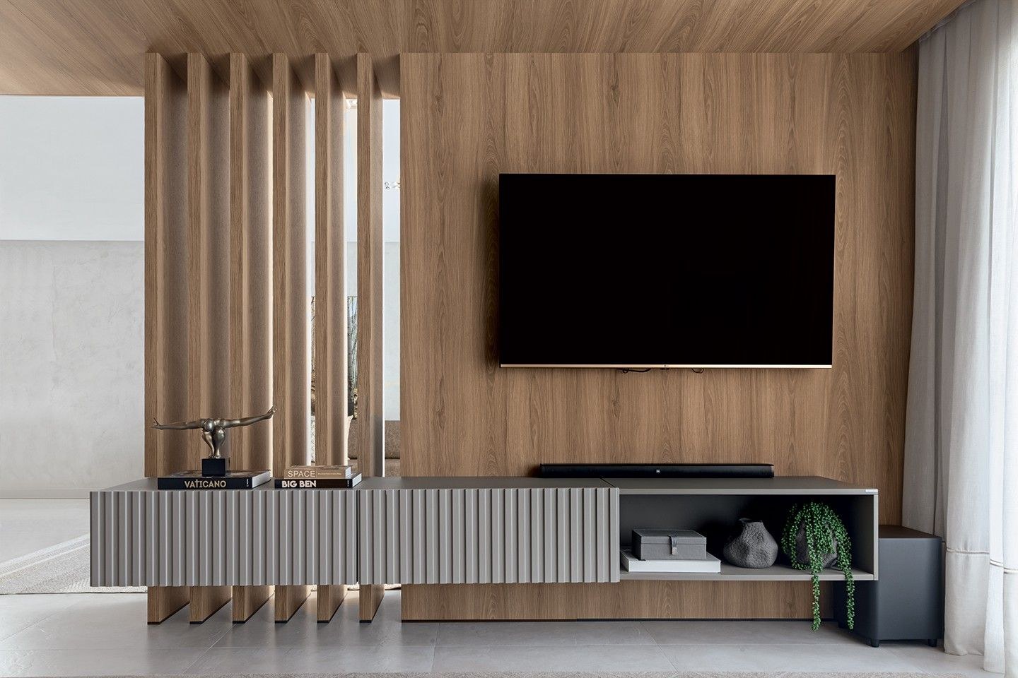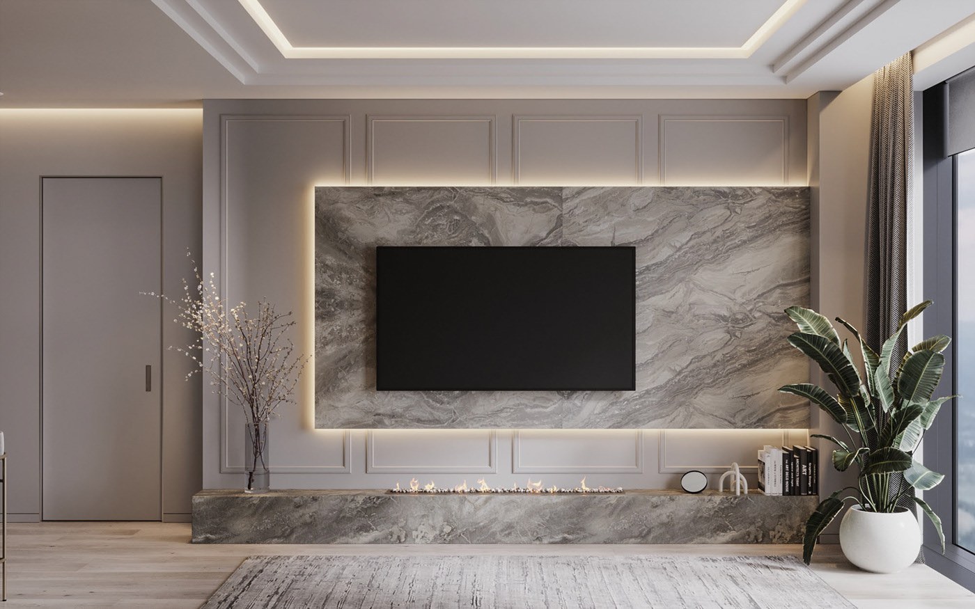 Телестена в гостиной в современном стиле фото и цены в Москве