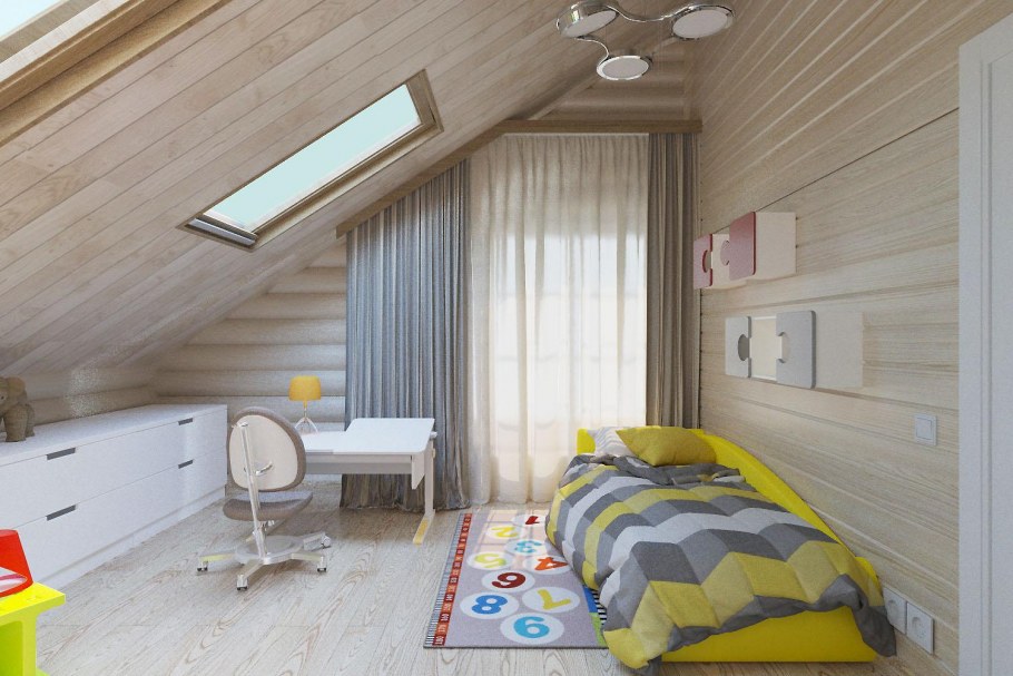 Спальня мансарда дерево Сканди