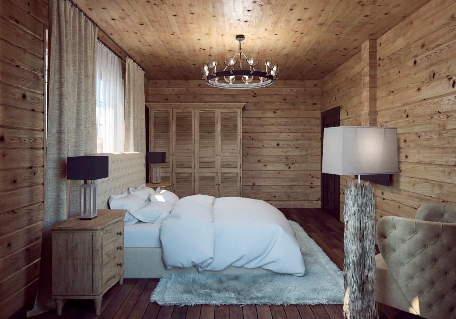 Спальня в деревянном доме в светлых тонах (48 фото)