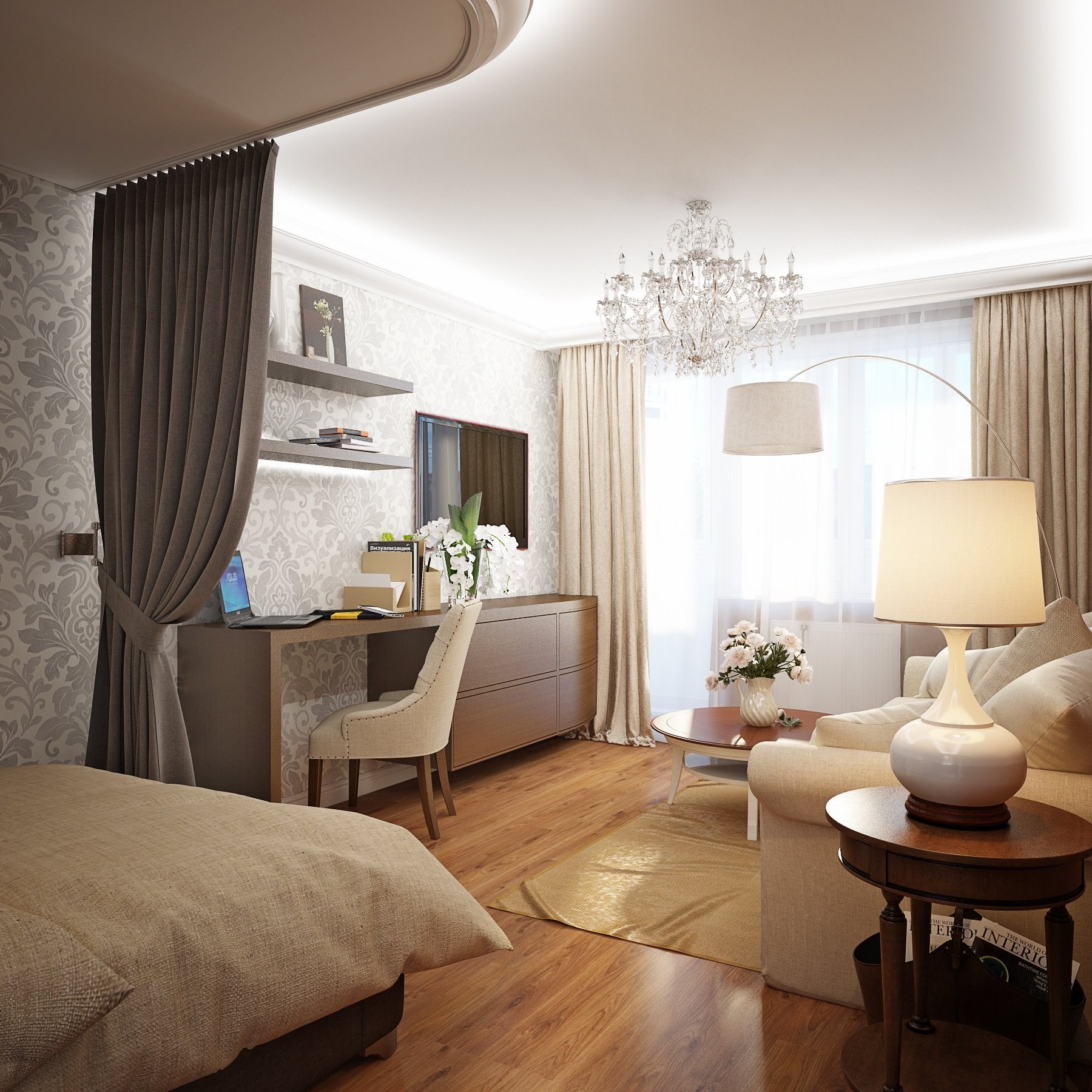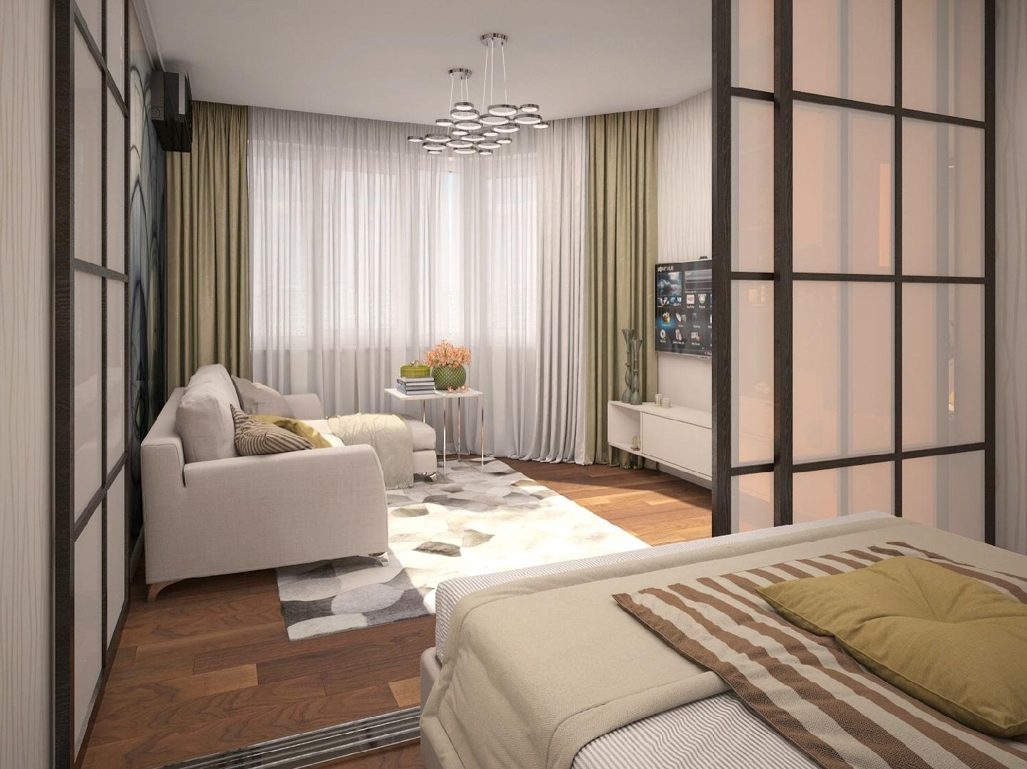 Дизайн спальни-гостиной