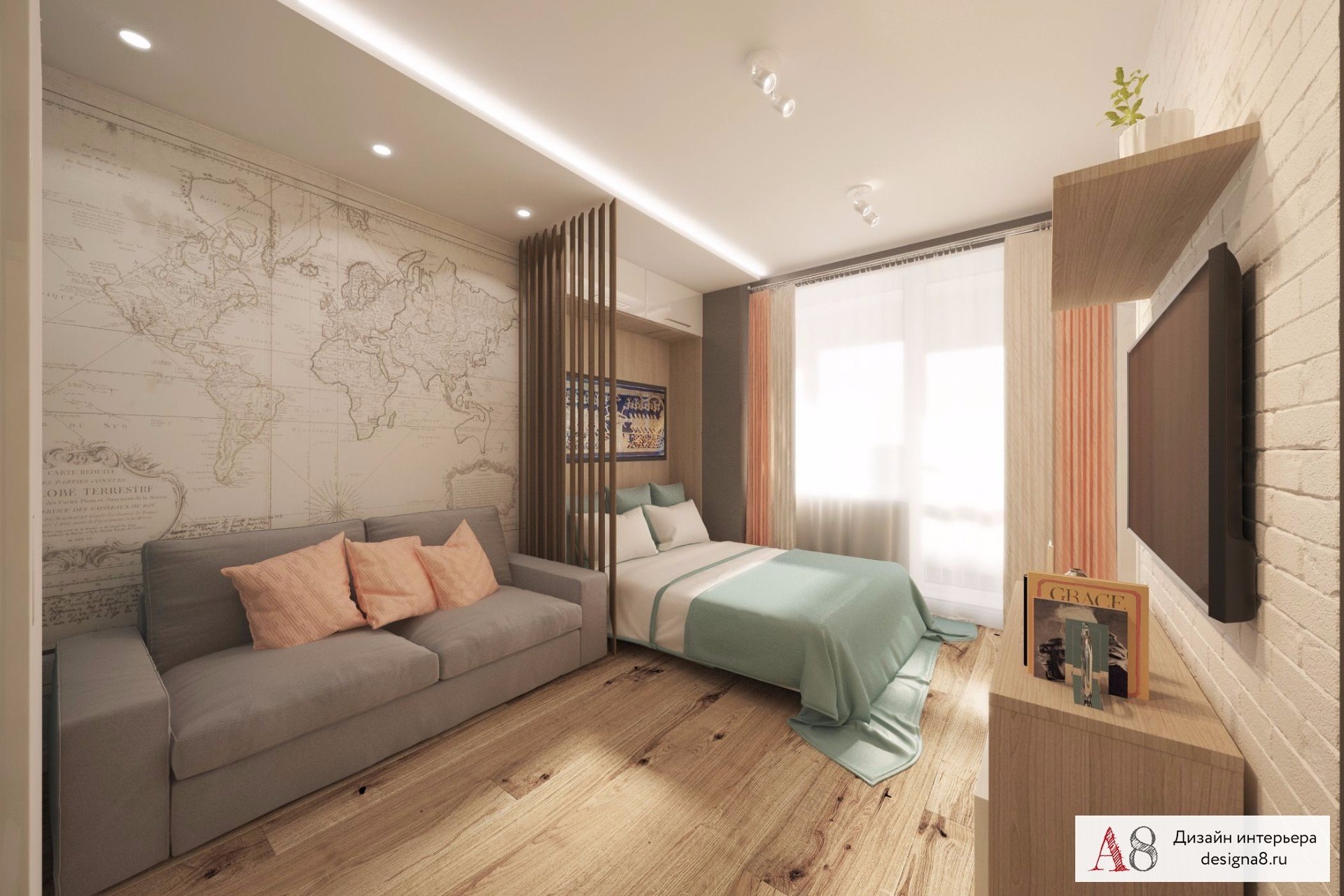 Комната 18 кв м гостиная и спальня