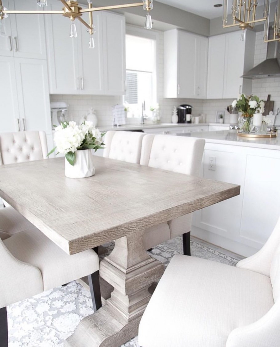 Белый стол в интерьере кухни