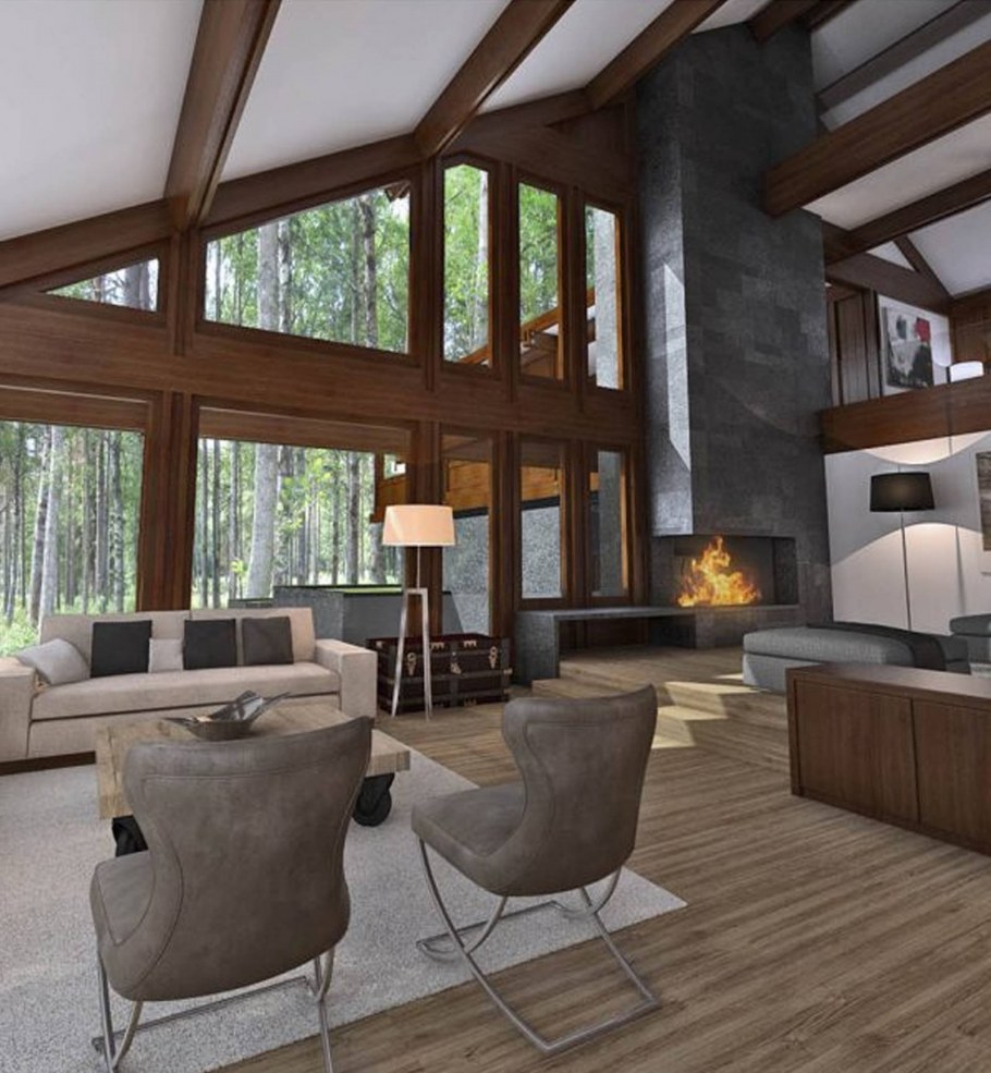 Тимбер фрейм современные интерьер Минимализм гостинной