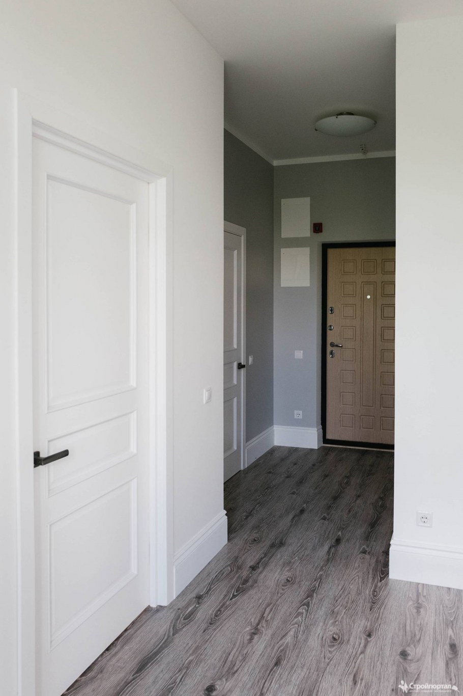 Светлые двери и линолеум и темные плинтуса в интерьере фото