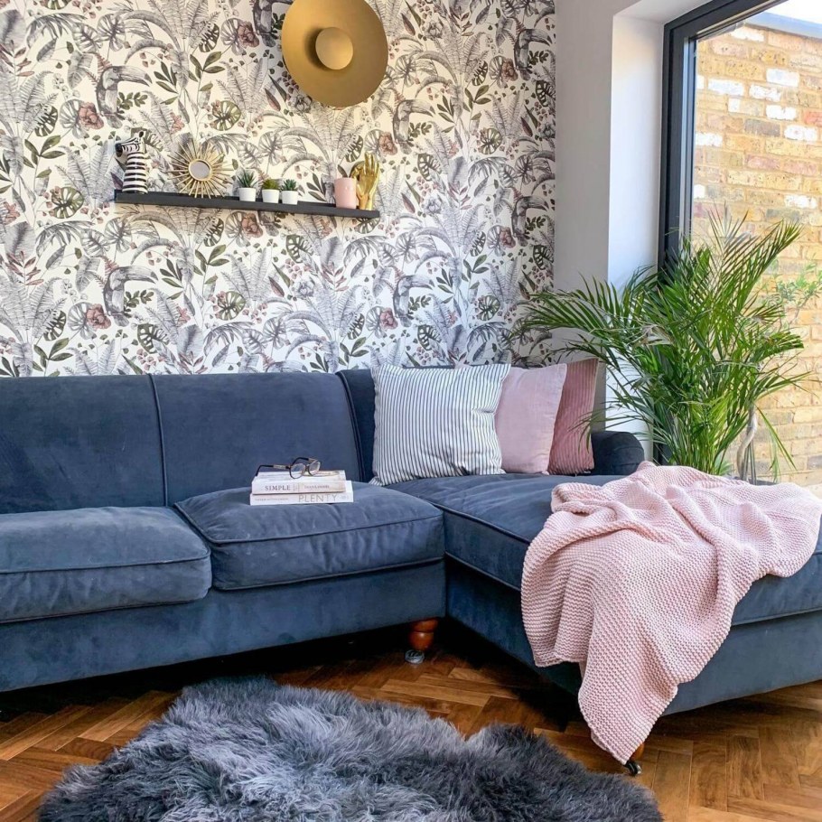 Гостиная с синим диваном