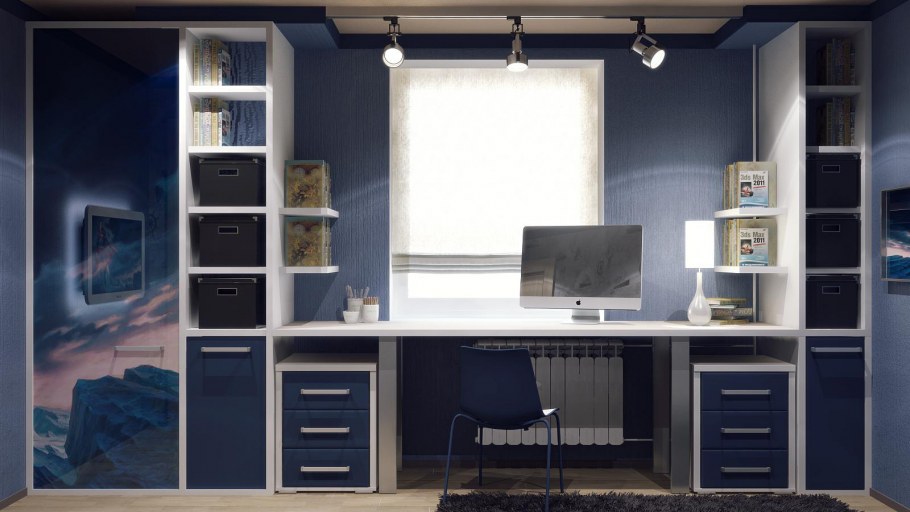 Интерьер комнаты для подростка со столом у окна (35 фото)