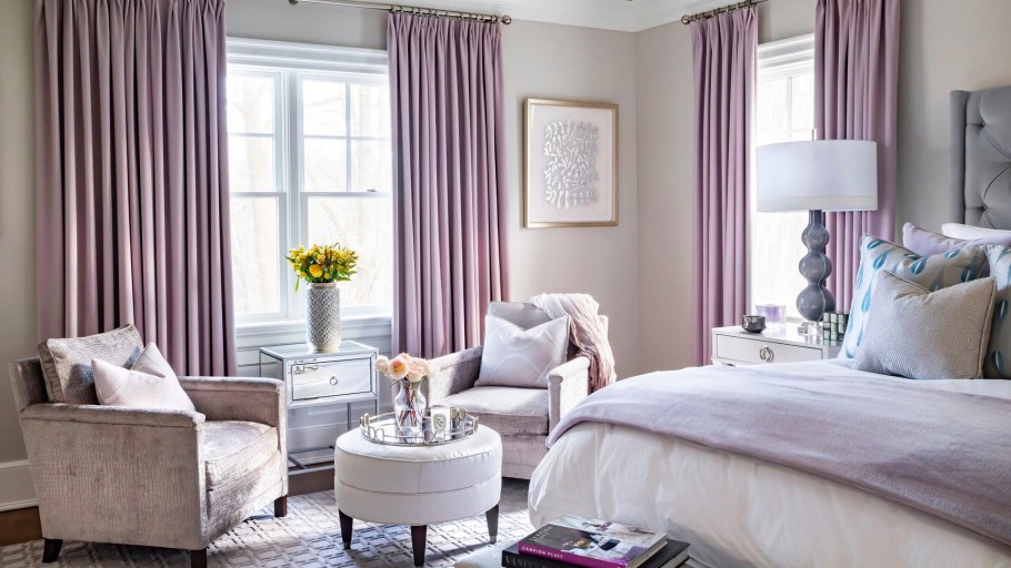 Серые обои и шторы пыльной розы в интерьере (54 фото)