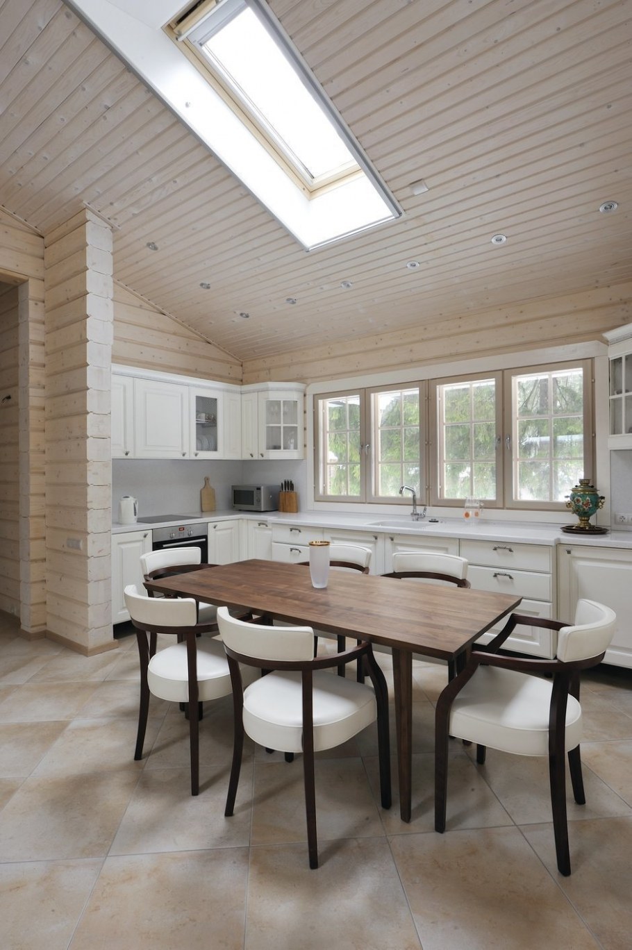 Белая кухня в бревенчатом доме