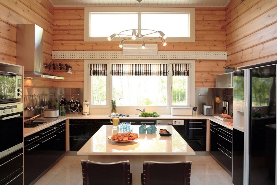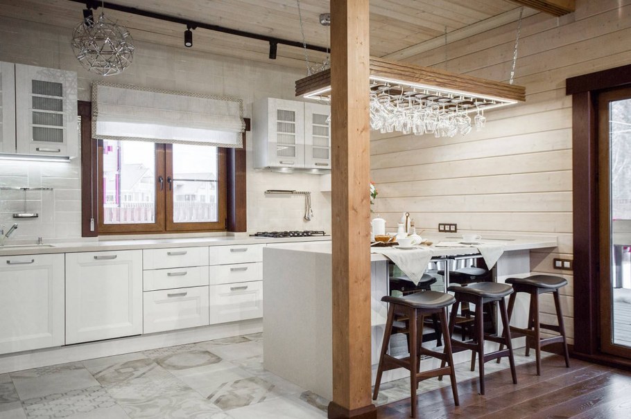 Современная кухня в деревянном доме
